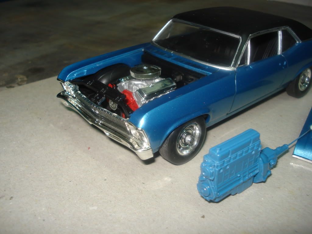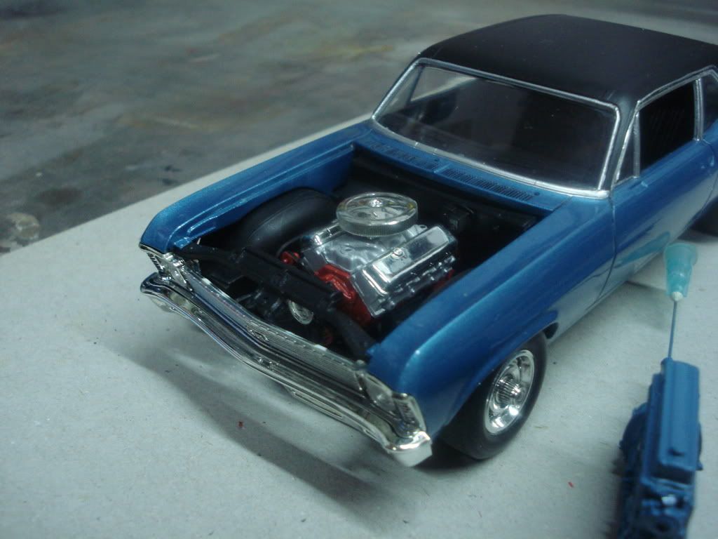 Hola, gracias por tu comentario, la pintura es un color original de chevrolet con una mano de laca arriba y el motor 6 cilindros es una copia en resina del de la chevrolet 1960 de AMT. Saludos