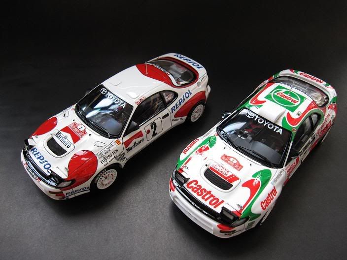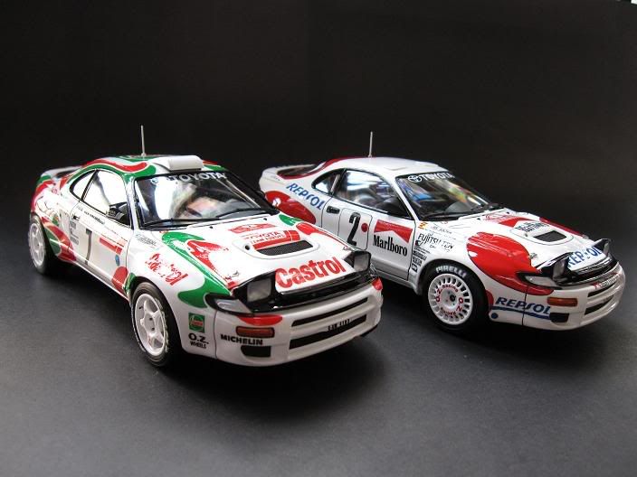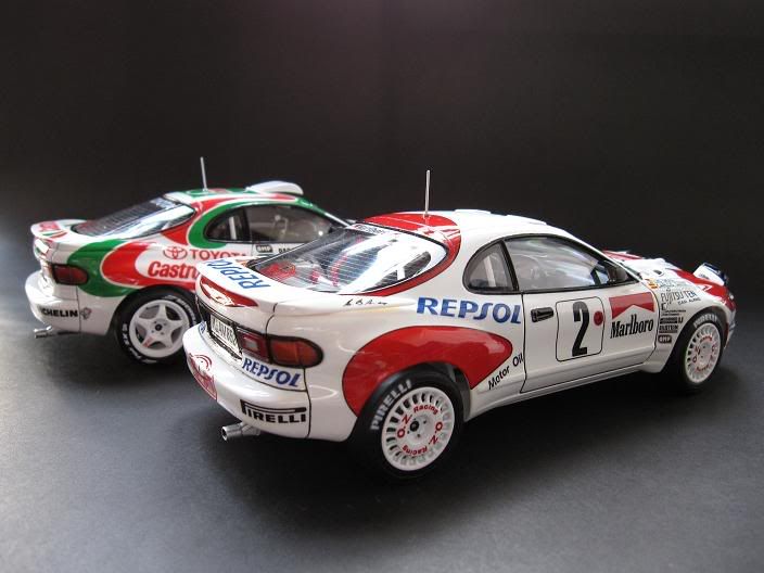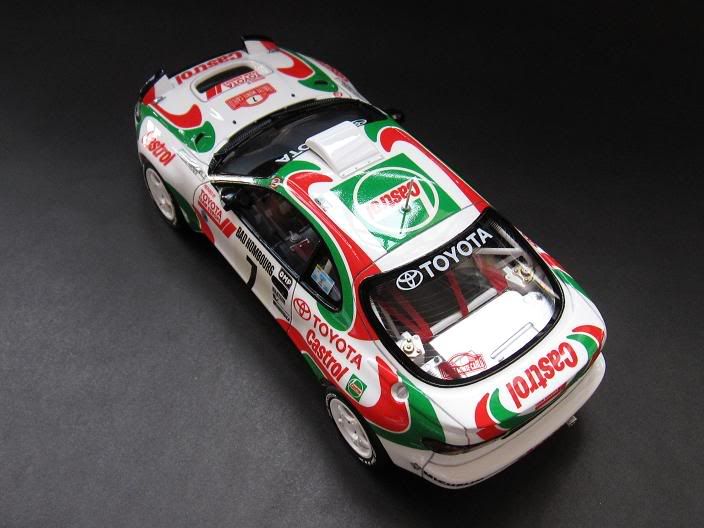 ben_gsr2s: Yup I had quite a bit of problem with the Castrol Celica's decals as they are quite hard / brittle, so I need to use a lot of decal softener to allow the decals to conform to the curvaceous surfaces. Some of the most problematic areas are the roof, the two vents on the side of the hood and the side mouldings of the two doors. As for the panel lines, I used Tamiya's enamel paint (german gray on the 92 model, sky gray on the 93 model) thinned with enamel thinner.