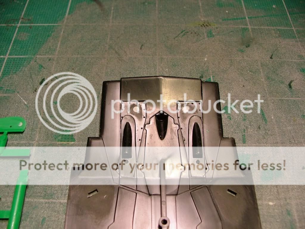The instructions show how to assemble the front suspension. Not a great sub-assembly and it makes the chassis look terrible when built. ![]() Here is a shot of the chassis and one of the front suspnsion side panels. Nasty fit issues here for sure. ![]() When the front is built up per the instructions, it looks like this image below. ![]() You can see by this picture, that a lot of filling and sanding is needed. ![]() Think about trying to install the front suspension clip, fill the seams, and sand the parts without breaking the suspension parts? No way. I'm going to cut the front struts and slip them into the chassis after all the sanding is done. It'll be a bit tricky but it can be done. ![]() Here is a shot of the suspension side panels glued in place and the side pod air inlets. ![]() Next step, filling and sanding.
