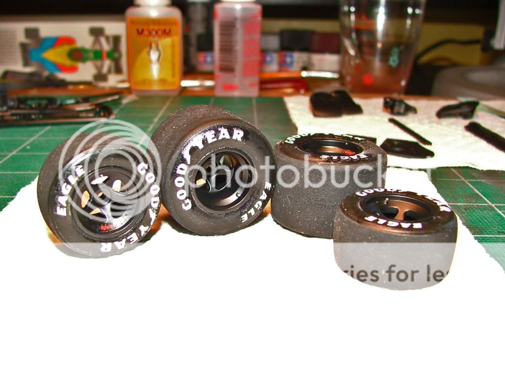 Well, the sanding and filling is done in the monocoque and it's looking prety good. I decided to work some of the simple items first like the tires, front and rear wings. I'll be posting some more progress pictures this wek. Be on the look out.