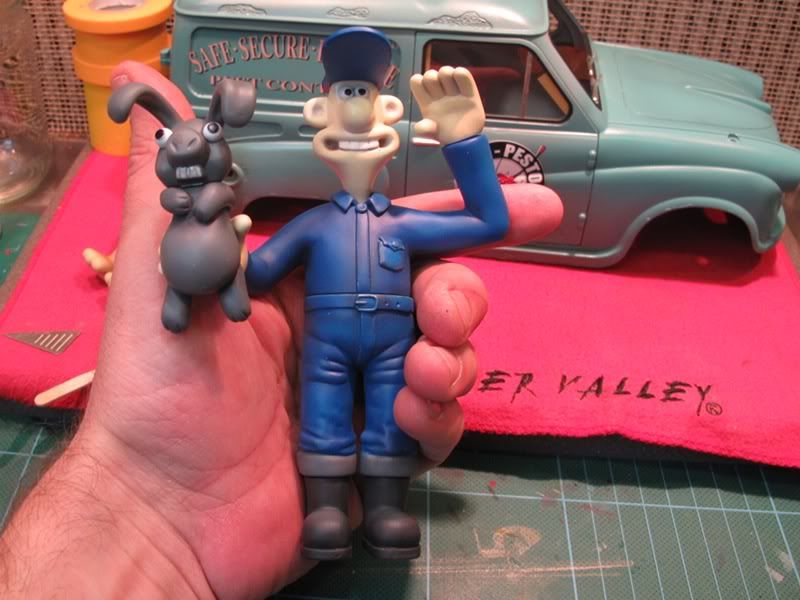 I have gotten the pesky figures out of the way. Took over a week of cleaning mold lines and puttying joins. Gromit was the worst - he was split in two with a joining gap the size of the Grand canyon! :o