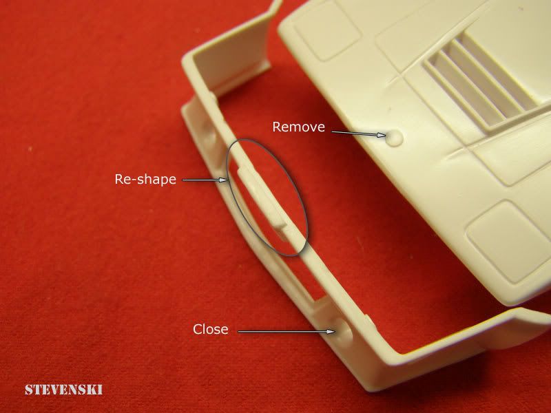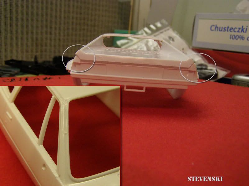 This is with out doubt the worst fitting and molded kit I have ever had my hands on except for the Monogram Lotus Esprit. Here are just a few of the things I'll need to do to the body in addition to adding the trans-kit parts.