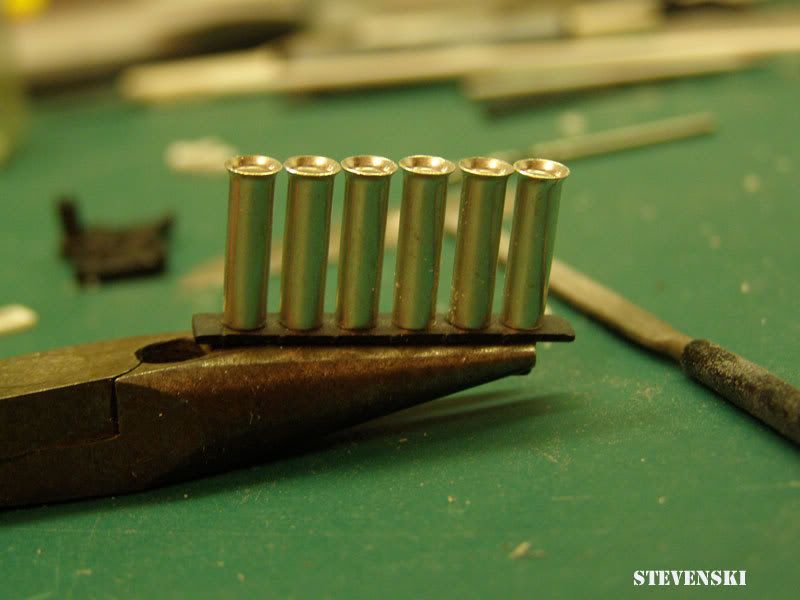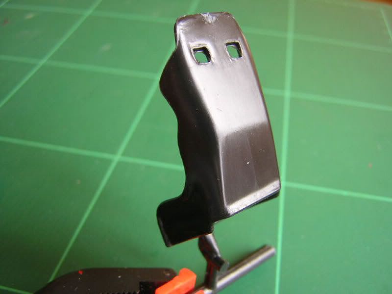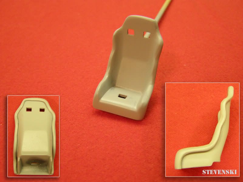 First the seat. This is the kit part. (Thanks to Micha for provding a photo od his since I forgot to take one )![]() I hope that motor sports experts here won't prove me to be totally wrong on this, but looking at more or less period correct reference pictures the kit part didn't seem very accurate. Photos showed that there is some kind of covering on the seat that leaves a “ridge” around the seat back. Since my personal target with this build is to get acquainted with putty, that's what I used to try and do something about it (I did consider stretched sprue, but I still can't get the hang of that )Using Tamiya 2-part epoxy I made a long sausage. To ensure a perfectly uniform thickness, I rolled it out on a piece of wet glass using a second sheet as the “rolling pin” (I hope this is clear what I mean) and this worked beautifully! The long sausage was gently draped around the back of the seat being careful not to push too hard and left to dry out over night. When it had dried out, I trimmed the ends and fixed into place with thin CA glue run along the seam. ![]() Next I used some Smooth Type Tamiya epoxy putty to mold the kit to the new edge. This took a few rounds of sanding/prime/smoothing to get right. ![]() And here is the near final result in primer. ![]() Before I do anything else to this I need to establish if it had 4 or 6-point harnesses. If the latter, I will need to cut out slots in the side. Next up for no particular reason was some engine parts. IMO a very distinctive element of the M1 engine bay is the air intake array. ![]() A row of wonderfully shaped and detailed breather tubes! Revell provide a row wonderfully un-shaped plastic blobs ![]() My initial idea was to try and recreate the whole part. ![]() My attempt quickly told me that without some real precision tools (like a lathe ) this was going to stress me out big time and would probably fail. So I decided to use the kit part as a base to provide accurate dimensions and fit to the engine and build on that. The key for this modification to look better than the kit part is not so much the individual breather tubes but uniformity in all 6 together – they need to look like a row of perfectly turned out soldiers on parade ![]() The strategy I came up with to achieve this was to gradually build up a row of pegs to put the tubes on. I centred out the part, marked of 6 equally space points and drilled 6 0,3mm guide holes. These guide holes were then drilled out to accept a piece of styrene rod. Slices of styrene tube (with an OD fitting the ID of the breather tubes) were fixed on the rod. You get the picture, I guess. ![]() The new breather tubes (same lead boot thingy-bobs used on my Super7) then just dropped into place. ![]() The next job was to work on the breather tubes themselves. They need to be trimmed to size and drilled out to accept whatever I can think of to reproduce the injector valves (if that's what they are?). IMO uniformity is even more critical here - any irregularities will stand out like a sore thumb here! Sadly my 2 lathe owing buddies are thousands of kilometers away and have proven records of loooooooooooong delievery times and I want to finish this build sometime this year j/kI decided to make a jig for the job using a larger sized breather tube which was cut to size and (after a couple of attempts) drilled with a guide hole. ![]() The smaller tubes were then slid inside, clamped in place with my left had and a bamboos stick while I cut and drilled with my right hand ![]() ![]() It actually worked quite well I think and here is a dry fit of the modified tubes sitting in their new home. There is some fine tuning to be done but I think it worked. ![]() So far so good. Next to come is to work on the injector valves. I won't share with you my 100% failed roll cage :[ I think I am going to give that a miss unless I figure out how to fix it inside the tub... Thanks for looking and you're up again CeeElle