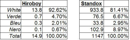It's "above and beyond" and I want you to know that I appreciate it. Secondly I agree, it does look "wrong" ![]() It looks too "greeny" to me but goddam I am officially classified as red/green color blind ![]() I tried comparing the percentages of your formula and the standox formula Ramon provided: ![]() But I don't think it really helps. Firstly they are for sure different base colors and the only major difference is in the content of black/white and in fact your formula calls for less green! ![]() So, what's up? Scenario 1: The Renaissance reference is strange. Perhaps, but I am pretty sure that this is the color they put on the model on their web page. I don;t see Etienne saying one thing and doing another. Scenario 2: Pastelturkis means different things to different manufacturers. Very probable. Scenario 3: the color you have mixed behaves completely differently under clear coat and turns more light blue. Possible I guess. Base coats do change under clear...what do you think? what to do? As you know, I really want to use your paint so I suggest the following: a) switch the blue/green proportions in your current mix at my risk in addition either: b) if you have a color in your swatch book that YOU think is closer please add it and I will purchase that or c) If you can mix to Pantone numbers please make a batch of Pantone 293 (this is the blue in the BMW logo) and I will purchase this also. How about that? does it work for you?