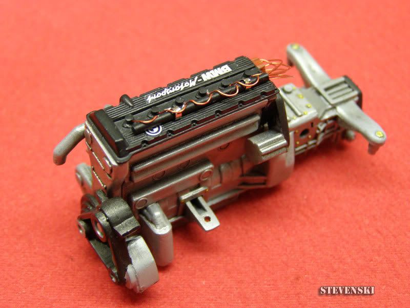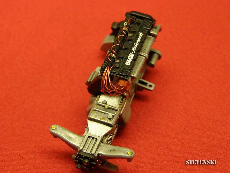 ![]() I used the Revel decals on the covers instead of the Renaissance p/e parts which has the wrong script: it says “M-Power” instead of “BMW Motorsports”) The tubing for the plug leads was made out of styrene rod with the end drilled out and wires were made out of 0.3mm enameled wire. Spare p/e sprue was used to add the clamps. When all the wiring is finished, it well get a heavy oil wash to tone down the decals etc. and I will probably put some dull-cote on the wires for the same reason. Over and out ![]() ![]() ![]() ![]() ![]()