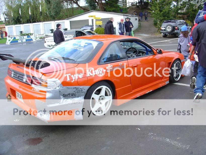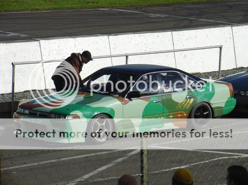 And it was FUCKING FREEZING today.About 40 cars entered, and there were some awesome cars just parked around. quotes of the day: "Please listen to the martials, and slow down when they wave their flags. That means you XXX XXXX Mister drift-past-the-towtruck!" "DORIFT BATTRE!! Dori dori for yo ass!" (Both from the commentator) Carnage: Several bumpers removed (the drivers zip-tie them on so they don't shatter and detach easily) One A31 (desert storm camo) snapped 3 wheel studs when it bedded into the dirt One S13 written off after nailing the wall A few love taps between cars One S14 bumper shattered (orange one) ![]() ![]() (nice plate) ![]() ![]() ![]() ![]() ![]() ![]() ![]() RB25 S13...didst layeth much smoke with fantastic glee and impunity ![]() ![]() ![]() ![]() ![]() ![]() ![]() Only rotary that entered ![]() ![]() Probably my favourite car there, along with the white and camo A31s ![]() This thing rolled last week...NO SPIN..(all roll) ![]() ![]() Bling bling! ![]() ![]() ![]() Bling Bling! pt 2 ![]() Waiting in the pits AND NOW THE DRIFTING Yes, they're shithouse photos, I had a zoom lens, but I still wasn't close enough. I think they came out alright. Never got enough smoke in the pics though ![]() ![]() ![]() ![]() ![]() ![]() ![]() ![]() (Note the front bumper of the S14) ![]() Wheeeeeeee! ![]() Look at the car on the right... ![]() ![]() ![]() Another RB25 S13 ![]() One battle damaged 180SX. (not all from today) ![]() The 180SX following couldn't see shit and spun out...this was in a 1 on 1 battle ![]() About half a second after this shot was taken the two kissed eachother...cue bumpers flying everywhere... ![]() Awesome day today! Just to explain how it worked: They did a few practice rounds, 12 cars at a time, just drift to get into the groove. Then a few qualifying rounds, 12 cars at a time, the top 16 go through to the battles. In a battle, cars face off against eachother. One car leads, and the following car has to keep up and match its drifts. Both cars are scored on speed (entering and sustaining the drift), angle (how sideways they get) and style (smoke, opening the door mid drift, hand/foot/penis out the window etc), and the following car is scored chase points, depending on how close it gets to the lead car. They then swap around. If a car spins, it forfeits. The car with the most points at the end of two laps wins. Camera: Sony DSC V1 with teleconversion lens Resolution: 3.2MP Balls: Frozen