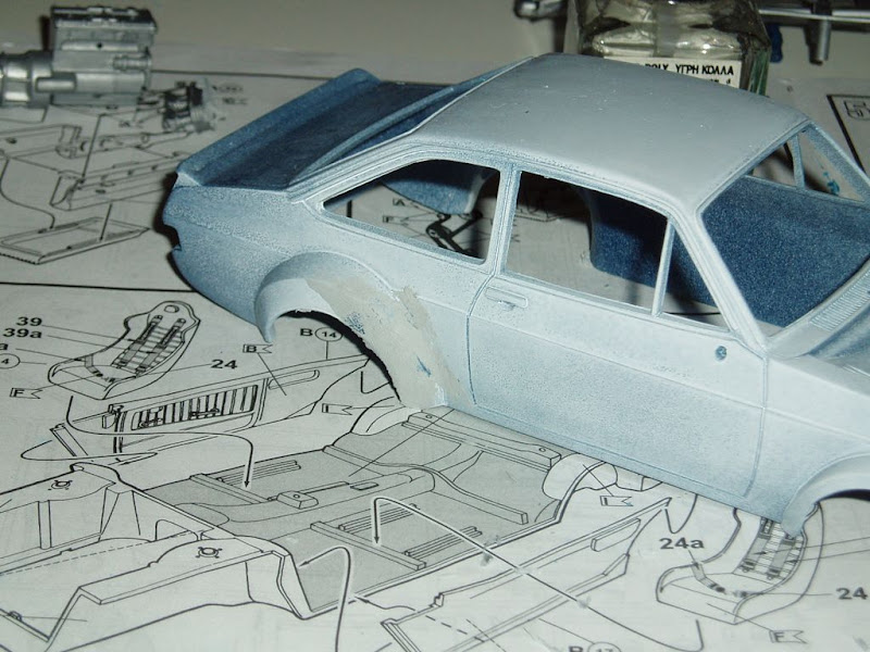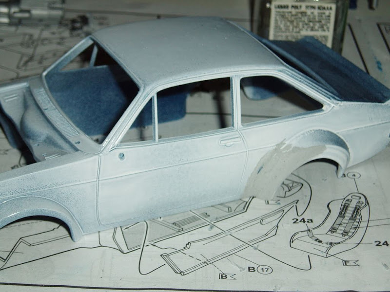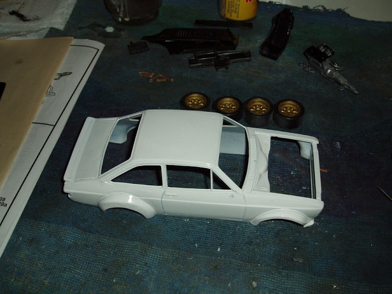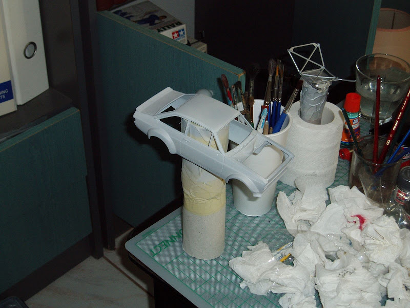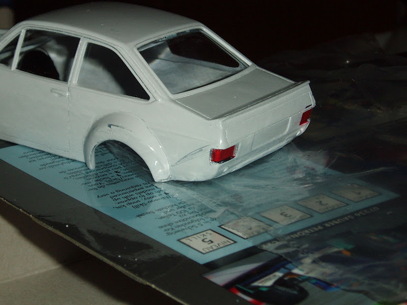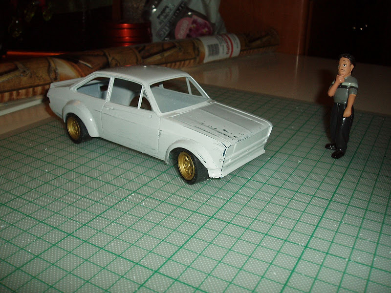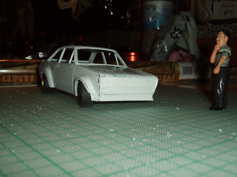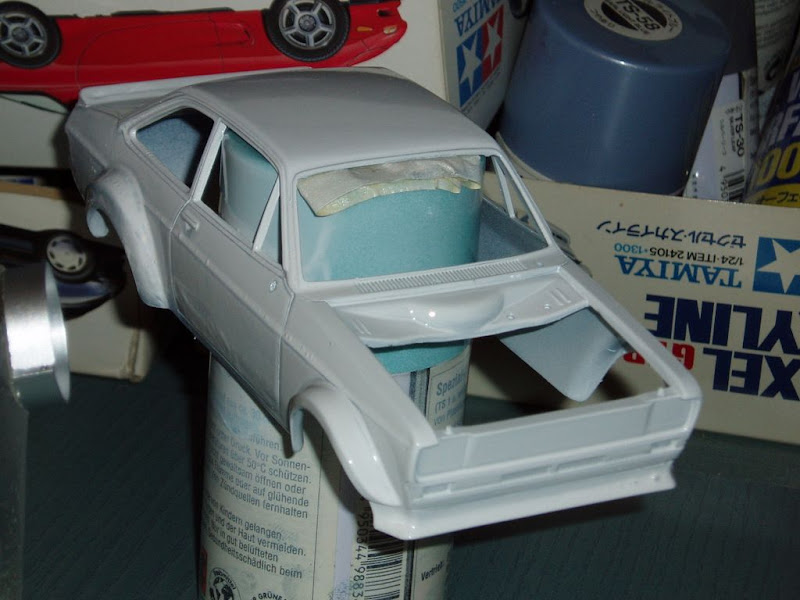 This is the Revell Ford Escort Rally (MKii) and instead of rally version I'm going for the drift scene... I dont have much free time, so be patient.. well this body needs a LOT of work... (sorry for bad picture focus)..