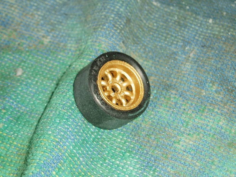 first coat of paint (Tamiya pure white spray) added some putty I'm going for white body, CF hood, gold wheels and some weathering... what u think??? |