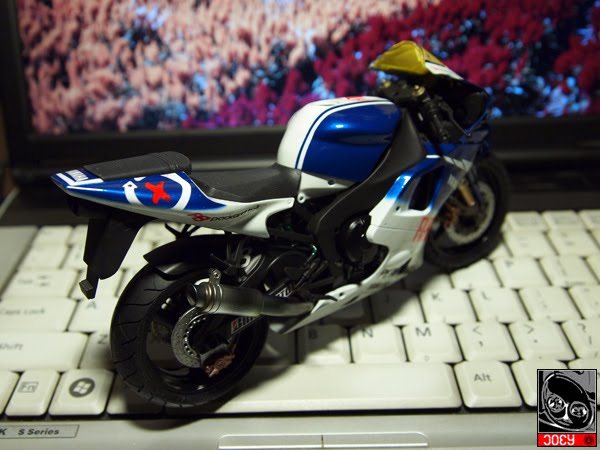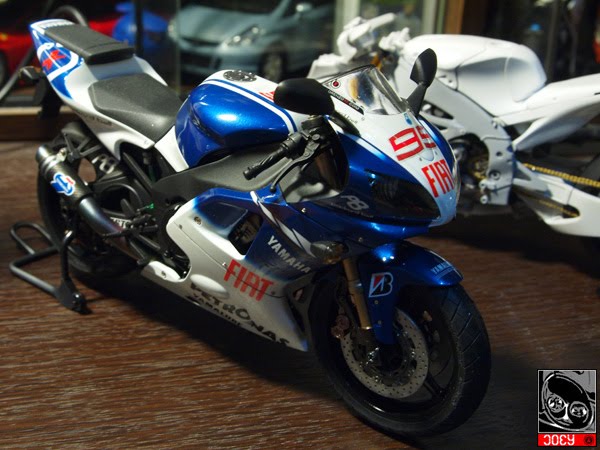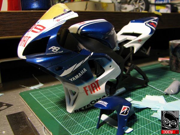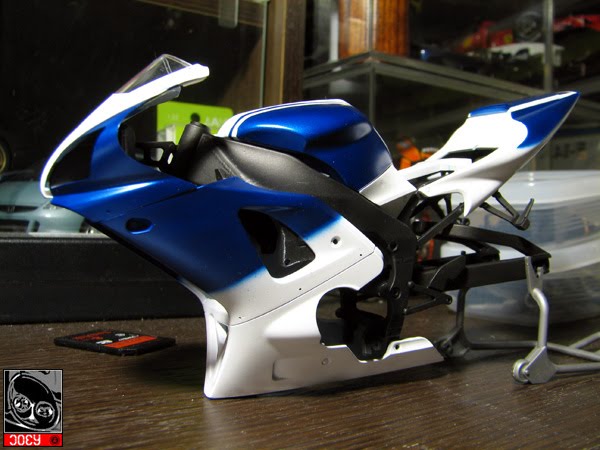 The R1 has been polished and little stuffs are all sticking onto it now. These has finally completed the converted R1 with the M1 exhaust pipe. ![]() ![]() At the same time, I have also got the M1 working with the cowlings. Gunze GX-1 base and pearl coat from Ricebox was primed. Everything is very simple until the blue color has yet to be confirm. ![]() However, one of my dear friends has managed to pull out a bottle of blue color that match exactly the same as all the reference I can get. Hopefully this will be available for all M1 fans and Rossi and Lorenzo fans later on.