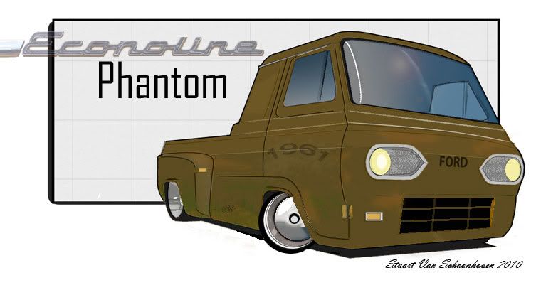 So i found a little time to draw another Econoline. This is one i thought of the other night while trying to sleep. Wondering what an Econoline would look like with fat fenders. The Phantom look from the 80's-90's. I remember all the Suburbans done like this. Next i might do a Delivery van. Anyways i illustrated it to look like a Rat Rod of sorts... hope you like... |