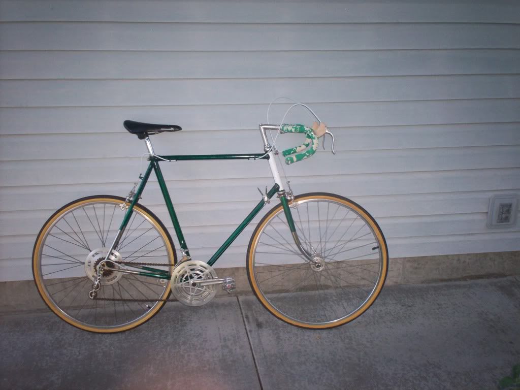 I restored my 1976 Raleigh Super Course last winter. Stripped her down, sand blasted the frame and repainted. I originally bought it with my income tax return of $225 in the bicentennial year. It still has no Japanese or Chinese parts on it except for the saddle and the handle bar tape. Hand made Reynolds 501 alloy frame from Nottingham England, Super Champion wheels from France, Weinman center pull brakes from Germany, Swiss ball bearing crank and wheel hubs and Huert derailures from France. It's a real nice ride with a touring geometry which is nice for a tall guy like me, the only real problem is that the maximum pedal cranks I can use are 170 mm and I occasionally hit the ground with those while cornering. I lost 15 pounds this year by getting back in the saddle.