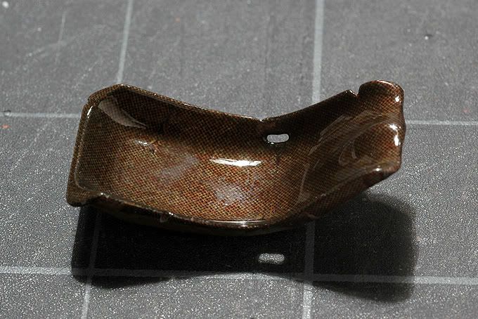 First up about my description for the RB Motion parts in my last post as “ positively ridiculous” i wanted to say just that! They are so nice that it’s a challenge to keep the rest of the model look as nice and crisp! They are ridiculous in a good way and I can only recommend them…..not that anyone gets me wrong :-) To the model then! In my last update I showed you my failed attempt to get the right CF look on the seat and the turbo air ducts. When they turned out crap I decided to strip them and try something else. As a reminder here’s another picture of the real seat. ![]() After painting the seat silver I added one layer of red flakes that I printed on transparent decal film. You can see the first half done in this picture. ![]() Because of the shape of the seat it’s not possible to do it all with one piece of decal. Like this it took a good deal of time and Micro Sol already :-) The seam line will later be hidden anyway so it’s no problem. Next I put on one layer of my own Kevlar decals. Since they are also printed on clear film the red flakes underneath still showed through. It turned out that the contrast with the silver base coat was very drastic so I put on a thin misty layer of gun metal grey to tone it down. Then I added the orange/brown tone. This time I went for a mix of transparent yellow, transparent red, and ( very important ) matt black and matt clear. The resulting paint looks a lot like Tamiya “smoke”. The matt parts are important because the make it dry faster and hence not run and build puddles. I added a bunch of thin layers until I got the right look. Finally I added two thick layers of automotive gloss clear ( with sanding in between ). Here is the seat after the second layer. ![]() It needs some sanding and polishing to get the last unevenness ( from the decal layers ) out of the surface and a little bit less shine. The glossiness of the clear coat is a bit too much compared to the real thing. In the next picture you see it after that and with some tape added like on the seat in the car I photographed at Goodwood. I can’t tell if Ayrton Senna had his seat taped up like that back in the days because in all my pictures he sits in the car……..so I decided to do it like this. The tape stripes are cut from black electrical insulation tape and to highlight the edges and make the tapes look a bit “worn” I brushed on some white pastel chalk dust with a brush. ![]() Also in the picture you see the turbo air ducts that mostly got the same decal and paint treatment as the seat. The difference is that I started with a gun metal grey base coat and didn’t put the “red flakes”. In this picture the seat and ducts look very much alike but in real life the difference is bigger and the pattern of the ducts doesn’t show as much. The photo and lighting change the look somewhat. The ducts are covered with two pieces of decal each ( one on the outside and one on the inside and lots of patience and decal solution :-) The problem was that with each layer of decal and paint the edges get softer and thicker. I tried to get a little crispness back while sanding and polishing but I had to be very careful not to sand through the paint anywhere. Ultimately the pieces turned out mostly like I wanted them…but most importantly a whole lot better than my first try so it was worth the extra hours spent redoing everything. Of course that wasn’t everything. The monocoque also had to go on. Initially it was much less tricky than the turbo ducts. I also airbrushed it with my custom “smoke” mix to tone the decals down from the look they had in the picture I posted in the last update. The paint mix also took care of the “magenta problem”. Here’s the result after clear coating but before some final surface treatment. ![]() I also redid the nosecone. When I put it next to the monocoque after painting the colour just didn’t look right. Also I was unhappy with the “seam line” at the lower edge of it that I described last time. It was too big. So I stripped the nosecone ( Btw…..is that just me?…..It was a real effort to make those decals stick nicely in the first place but then, when I wanted them off……no sir! I really had to get nasty with glass paper in some places to make them go…..). Anyway I sanded the seam line smoother, painted the nosecone gun metal grey this time and redid the CF decals. Then I covered them up with a mix of matt clear and just a bit of matt white. I think that looks quite good now. Here’s the real car again for comparison: ![]() And this is a closer look at the front part of the chassis. Even in the picture you can see the effect that the patterns show more the closer you get and I’m quite happy about how everything came out…. although it took quite some time. ![]() A serious amount of work did go into the underside of the car. Here you see what it looks like right now, before some final touches and detailing. ![]() My special thanks go to fellow AF member Cinqster who was cleverer than me and took some pictures of the car’s underside when it was on display in Goodwood :-) Here are two of them. The first one shows the middle part of the undertray and what you might mistake as a wooden “legality plank”. ![]() It looks a lot like wood with those scratches but I guess it’s some kind of Kevlar. This photo was actually the starting point of my decal. I changed it to the right size in Photoshop and added the part at the front that’s missing in the picture. This I printed on clear decal film and put it on the grey primer patches that I masked off when spraying the undertray black. Afterwards I also “smoked” these areas a bit and added some scratches in the black paint with rough glass paper so the primer showed again. Next is a picture of the diffuser area. This clearly got used and also the vertical diffuser fins are missing. ![]() I decided to keep my model diffuser in “better shape”. There was no way 