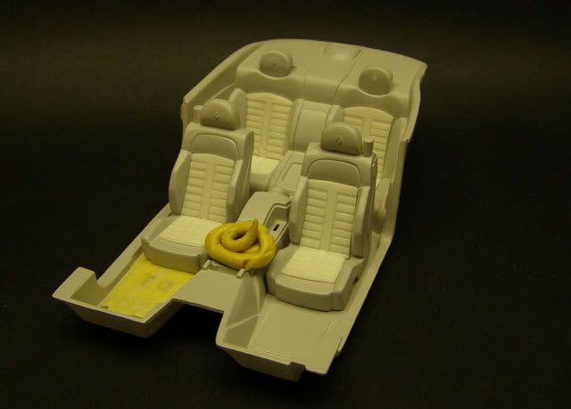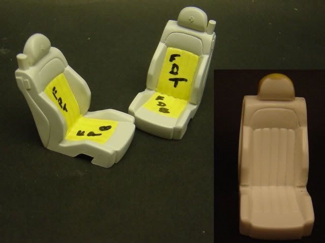 While Gio has been setting all time new highs with his part of this thread, I think it's about time I brought this thread back down to Earth ![]() Interior. Just so you know, the redhead of this pair of China Girls has seats with the "Daytona" upholstery pattern – so of course Revell kindly decided to mold the kit with the other style This has brought my build to a grinding halt for the past 2 months. The prospect of modifying this just totally daunted me. On top of that, it come just after Tang shared his mind boggling seats with us – talk about a hard act to follow... ![]() At first I was pretty intimidated by the idea of changing the pattern but then I remembered hiroaki's great 550M thread with his scratch built seats and this put an idea in my head that seemed feasible. Basically my plan was to grind down the Revell pattern, make a master “Daytona” pattern, cast it, cut out shaped inserts and glue them in place. Sounded simple enough. Now some pics for those of you who don't like reading my prose ![]() First thing I did was to carve off the molded in seat belts, add some styrene bits to simulate hardware and put p/e cavallinos on the headrests. (FYI at some point in the process I mixed up some bottles and tried to wash the seats with acetone – that's why they look so crap )![]() Next thing was to make the pattern. I did this by cutting 1, 1,5 and 2mm strips of styrene and cementing them to some styrene sheet. One master for the front seats ad one for the rear seats. This was pretty time consuming and tedious and I started rushing it – first paving stone on the road to hell... ![]() and so on and so on.... Once I had my 2 masters I made a silicone mold of them. I decided to make resin copies because my assumption was that the chances of me cutting and trimming to a good fit first time were less than zero and I really didn't feel like cutting another million little styrene strips. With a mold, I could simply re-cast another set. ![]() From the mold I could cast two wafer-like copies (This picture shows the resin copy and the styrene master) ![]() Here you can see the cast pattern with the seat. ![]() The resin master was cut into the appropriate 8 pieces, the templates applied and the pieces cut out. This is a test fit of the first panel. ![]() This is a test fit of all 8 panels in place. ![]() I try to be an honest critic of my own work. IMO this was a pretty good idea that didn't work out as well as it was supposed to. Not because the idea was bad but because I just didn't execute it well enough :[ I gave myself an award for this update – the Klutz Krap Award. Here is a picture following the awards ceremony: I'm going to paint it up and see how it looks when the whole car is put together. I fit still looks crap, I have a spare kit and I can try again. Thanks for looking and now back to the Master – Mr Pong