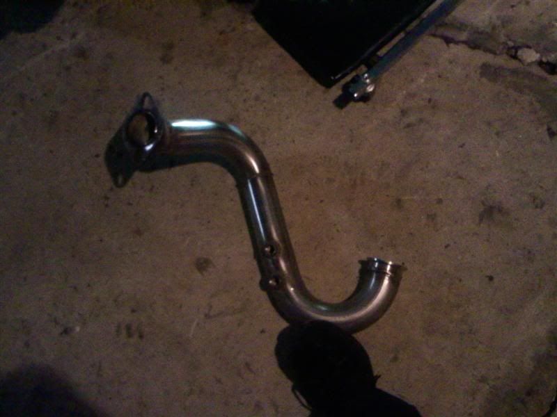 Since I'm throwin a HUGE Halloween party tomorrow, I decided to work on the car this cold, rainy Friday night. I finished the DP (Started out good, but that last piece of fab to match up always sucks for me), ran SS fuel line on the return, and finished the IC piping. Also bunch of random other crap too.