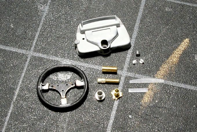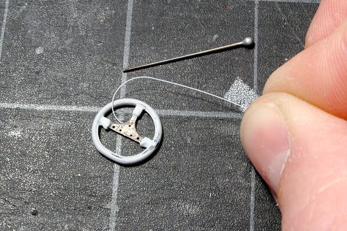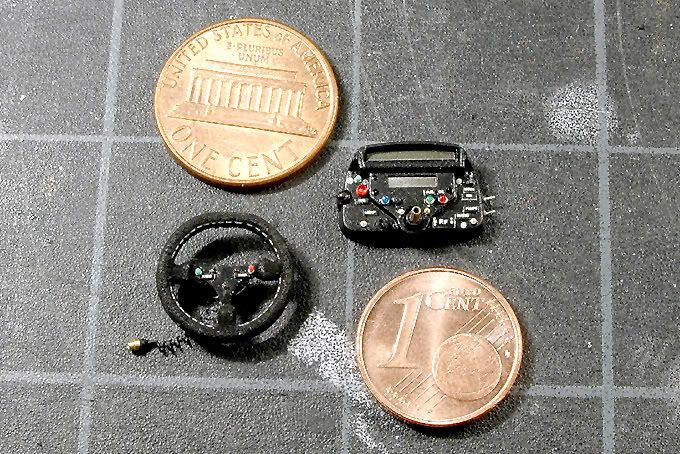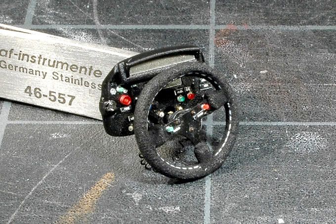 The stitching on the steering wheel is incredible.The whole dashboard/steering wheel area is a model in itself.In 1/12th scale this would be good,but in 1/20th scale it is fabulous.Excellent work.