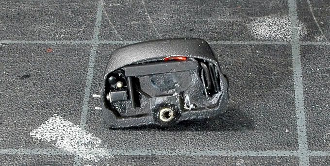 Working on the pieces I showed you on the last one got me back into the swing on this model after all. I didn’t continue on the suspension pieces though but spent some time on the missing pieces in the cockpit that had been lying around half started for ages. The thing is that I knew all the time what I wanted to do…but didn’t think it would be possible that way. In the end I decided to just give it a try and to my own surprise I can report…it worked! So I have some real eye candy to show today…i think:-) There’s only one little letdown in the story….. My dad recently decided that he really needed the macro lens we have been sharing for a long time. The only problem is…..we live 300km apart now so that means I can’t use it for thge time being. This turned out to be a problem with the parts I just built because they are bloody small:-) Seems like I have to get my own lens sooner or later. For now my standard one had to do which is less than perfect. See for yourself…. To the cockpit then. There were three main things still missing: The dashboard, the steering wheel and the roll bar adjuster. The last one was a novel addition at McLaren. It gave the drivers a lever to change the front roll bar setting during the race. Apparently Senna played with it a lot when he had nothing much to do during the later stages of some races:-) The real one looks like this: ![]() Tamiya supplies a plastic blob to represent this but this part just cried for PE parts. So I replaced it. At least the Tamiya piece was good for taking measurements :-) In the next picture you already see my finished one. For comparison there’s also the black Tamiya part and some international monetary reference for the size:-) You probably understand now why I need a real macro… ![]() To the left you have the etched bits. The part with the numbers and the lever had to be airbrushed black and I added a styrene knob that I “turned” in the motor tool ( complete with a hole in the top that I filled with some silver paint). I also added some tiny brass PE washers. The bowden wire to the right was built using a 0,5mm injection needle and some Modeler’s plug wire plus some scratched bits. The real party piece though are the numbers on the part above the lever! They are each just 0,2mm high but still readable. A decal ( especially a home made one ) wouldn’t become crisp enough to do that. These numbers are white custom made dry transfers. They are manufactured in a chemical process and while that’s a bit difficult to calculate it does every now and then give very good results. I thought that it wasn’t gonna work but gave it a try anyway and it worked! That of course made me even more ambitious:-) To the dashboard and steering wheel then. Next you see front and back side of the parts that come in the kit: ![]() ![]() They are a good starting point but do lack detail of course. Here’s the real thing for comparison: ![]() I started with the steering wheel by cutting out the spokes because they were quite thick and replaced them with a brass PE piece. I tried to burnish it to get a better metal look but the result was uneven so it had to be painted in the end. The rim was sanded and I improved the shape using some body filler, files and glass paper. For the slightly flattened shape of the top of the rim I just bent it with pliers. ![]() One thing I always planned to have was a removable steering wheel. The one really tricky part to make was the tube with those grooves the steering wheel is stuck on because I wanted some grooves and not just a clean tube! For comparison again a picture of the real part: ![]() This is where my mill and the dividing head I showed you in my last update came into play. With a lens shaped milling head I managed to cut these grooves. They are 0,1mm deep on a 0,8mm brass tube. Again that worked better than expected! ![]() There are less grooves than on the original and they are deeper than they should be in scale….but that’s a compromise I had to make:-) In the next picture you see the main parts of the dashboard/steering assembly before painting. Along with the steering wheel there’s the dash that I had to rework in a couple of places and strip off the moulded in buttons. Also there are the two brass tubes for the steering column, the parts for the back of the steering wheel ( one turned from aluminium, one a brass tube on a photo etched base ), some switches ( one again turned aluminium and two made from styrene ) and the display glasses that I cut and sanded/polished to shape with micromesh from 0,1mm transparent film. ![]() One big step later this is what the dashboard looks like after painting and dressing up with buttons and control lights. ![]() I could go on how every detail was made but I don’t wanna completely bore you guys :-) It did take time! Should anyone have a question feel free to ask… You may notice though that something is missing compared to the original……..yep those little labels:-) That’s where I got more ambitious after the dry transfers worked on the roll bar adjuster. Originally I wanted to leave them off because i rather don’t have a detail on a model than have it looking bad ( like some white brushed on dots in this case ). The characters are even smaller here ( 0,15mm high ) and they are really tricky to read… but you can read them….with a magnifier :-) ![]() To put them on I rubbed them onto black decal film. I then cut them out with a fresh No11 scalpel and fixed them on the dash with semi gloss clear enamel paint. Like this I got those white edges ( from the decal carrier paper ) like on the real labels! I also worked on the “inside” of the dashboard. As you can see some of the components are visible when the cowling is removed: ![]() I thinned out the walls of the part in the visible areas and after painting it black added the details from styrene and nickel silver bits. The messy lower part will of course disappear once th