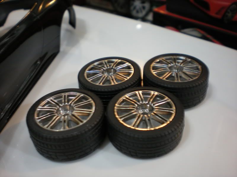 ![]() Some parts of the body are seperate due to chrome or carbon fibre detailing needed like the front lip and rear boot chrome lining. ![]() ![]() The front and rear lights compriced of many parts. Each part being one colour , which makes detailing easy as well as painting. ![]() ![]() ![]() ![]() ![]() ![]() Overall its well thought out kit and it still offers perfect fitting parts + PE + window mask which just became a standard issue across the board. Some progress on the body This is after 2 coats of black metallic paint and pearl. Sorry i forgot to take after the metallic black. ![]() ![]() ![]() This is after clearcoating and sanding at 1500 and 2000 before the last clear coat. ![]() ![]() ![]() ![]() Another shot of the rims after some work done to add realisim