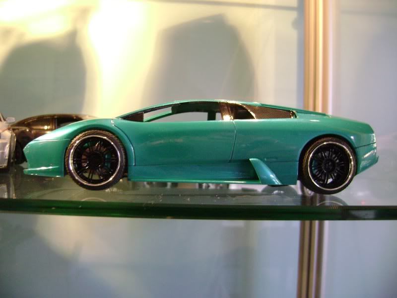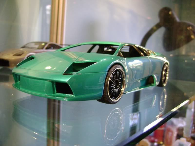 Finally some progress!!! Ive been working on the wheel hubs, fitting the new larger wheels, correcting the ride height & extending the track so the wheels are at the edge of the body ( a common problem with Fujimis Murcielago). Its a bit crude, ive simply offset the spacer with the revised brake hubs, but seeing at its only a basic curbside I'm happy with that! ![]() ![]() ![]() I know the 40th had special silver brakes but the body coloured brakes really look great behind the black wheels!! Still abit of sanding & shaping to do, but things are moving ahead, albeit slowly...