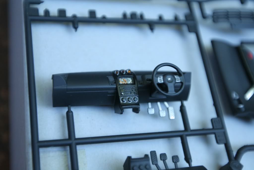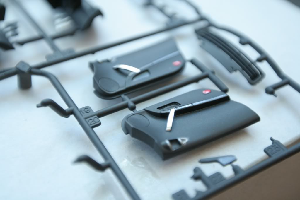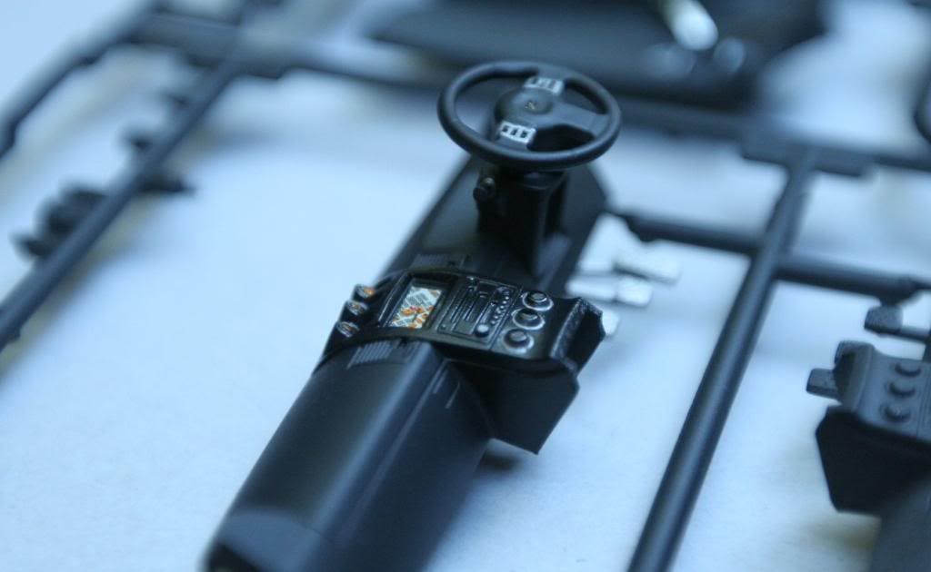 ![]() The steering wheel has 3 switches located on both sides: ![]() So I cut out rectangles from the tamiya logo to put on the steering wheel as switches: ![]() Result: ![]() And the finished center console: ![]() ![]() Also finished the doors: ![]() Still need to add the speedo and tacho but I'm waiting for PE parts, been waiting a month already ![]() Thanx |