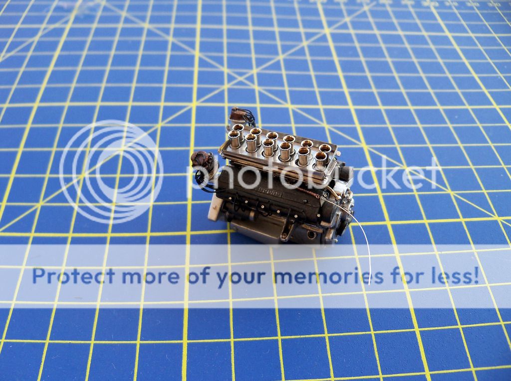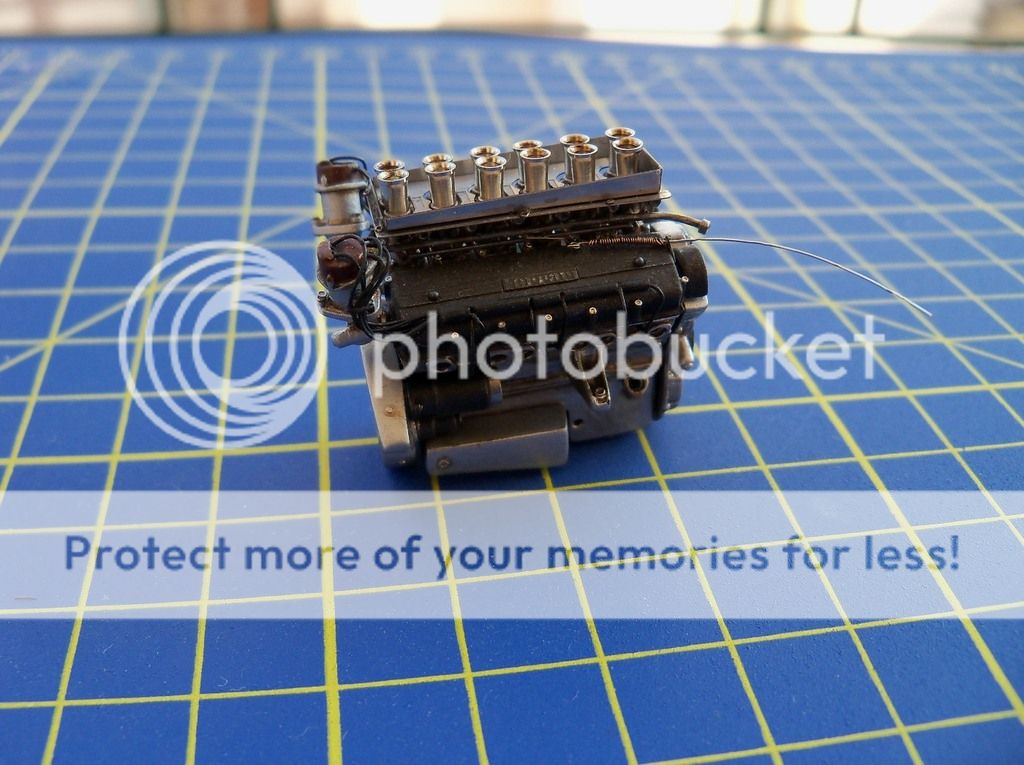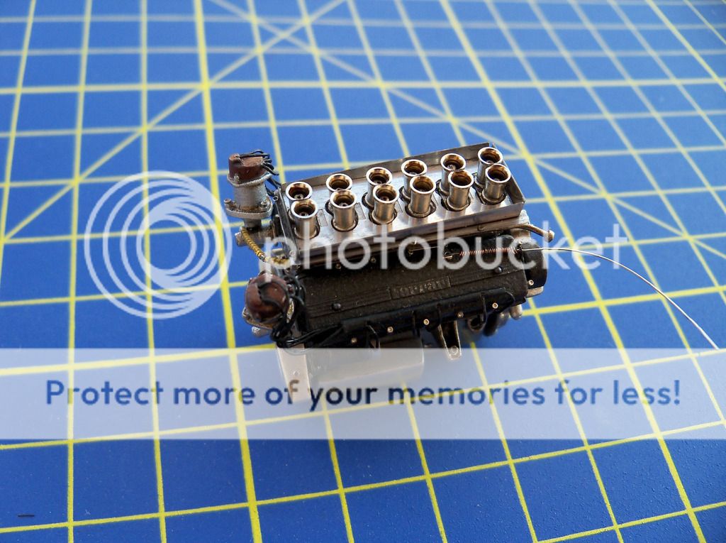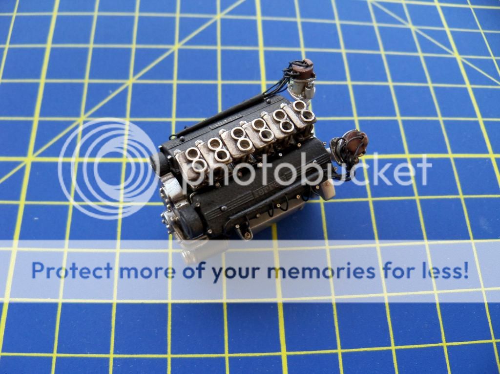 First I assembly the parts and then paint them with Alclad's aluminium, over black base... ![]() Then, I decide to weathered the V12. So I take some oils and mig's products to achieve an 60's sense on my build. ![]() Also, start adding some bolts-nuts on it. ![]() Then, some engine component painted and attached. ![]() ![]() To the cylinder heads, I add some 0.6 bolts, from a top studio set and 4 little balls (included in the kit). ![]() ![]() ![]() Afterwards, add them to the engine and attached an the first part of plug cords. The six Weber carburettors, also painted, weathered and glued on to the engine. ![]() ![]() The upside down view. ![]() Then, the ignition system completed and the engine looks like this. More engine progress, follow on next update... Thanks for watching! George |