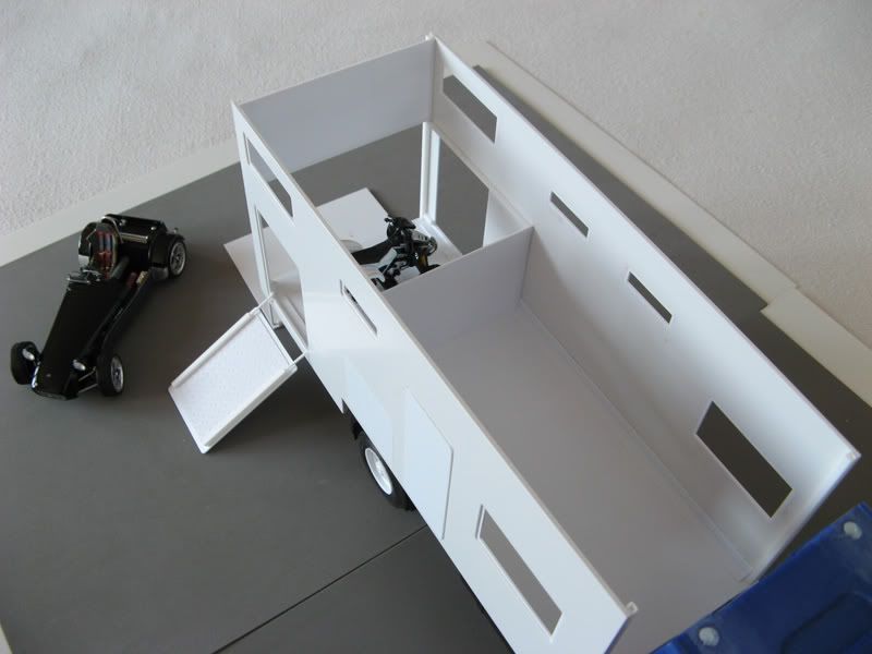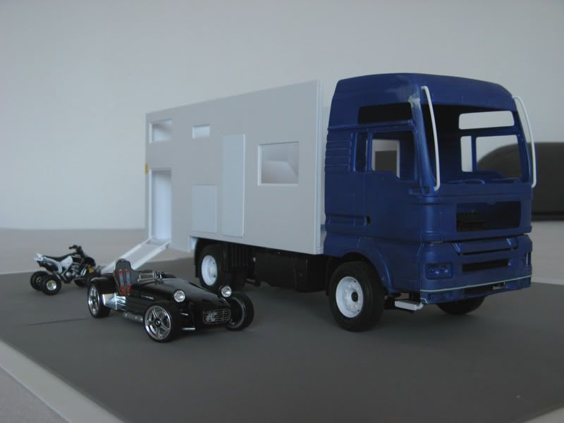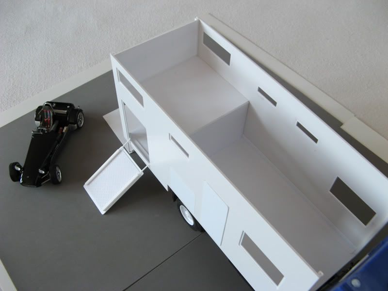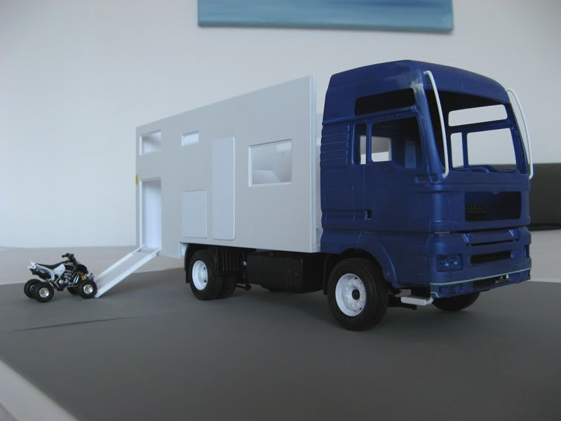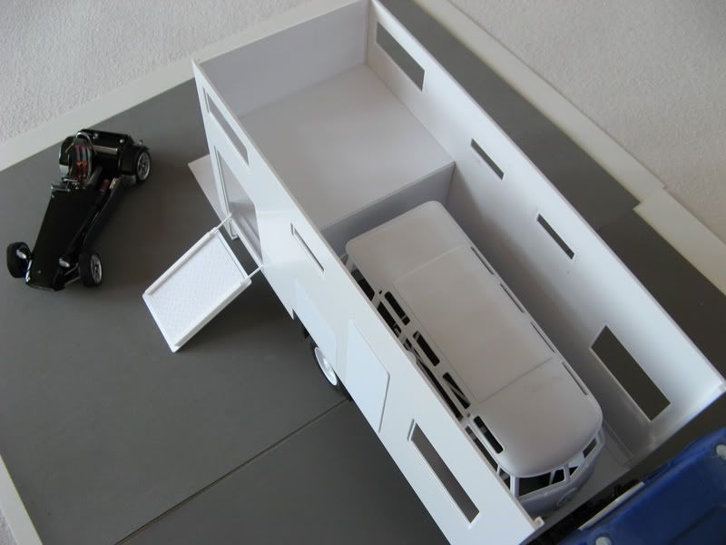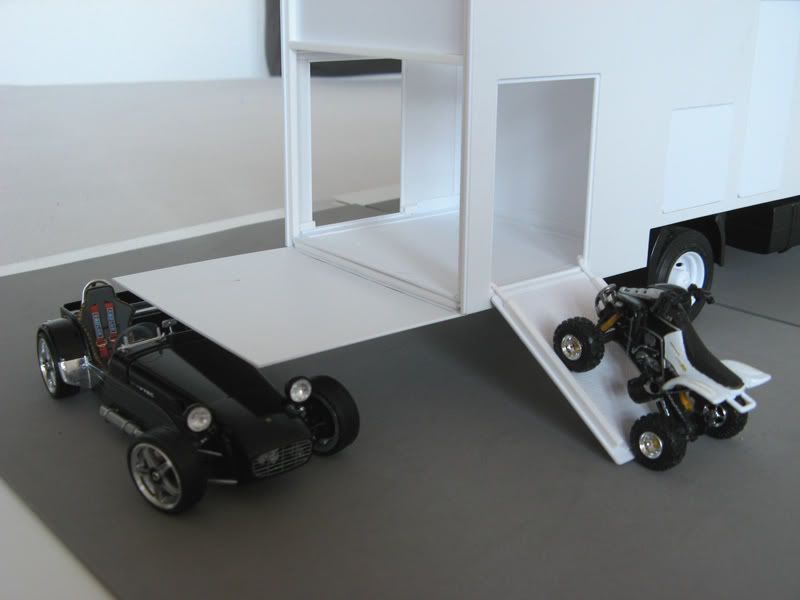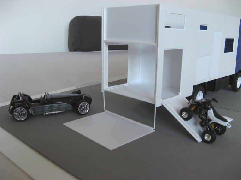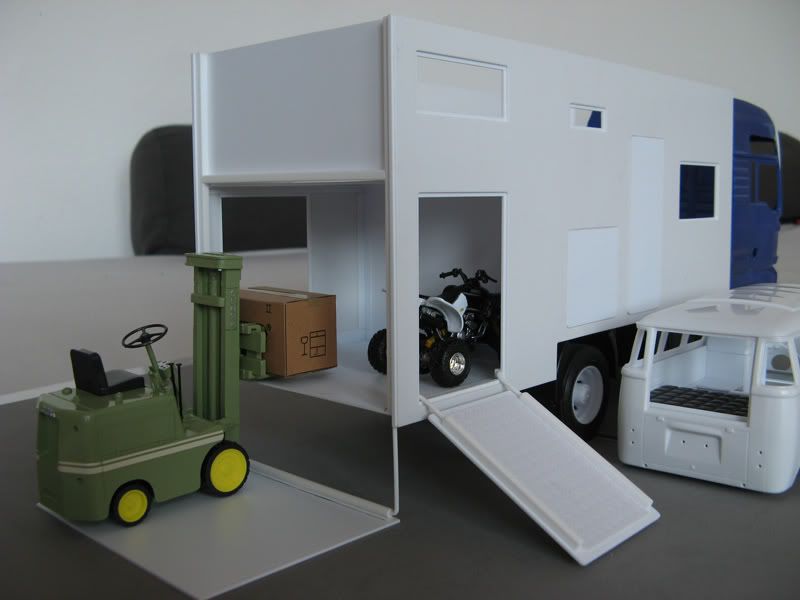 - The ATV is a 1:32scale item, I just can't recall the brand - The forklift is from Wiking (a company known for 1:87 cars and trucks). I'll try to get more info. I did some work on the rear ramp / garage door (sorry, pics are a bit blurry): ![]() ![]() More later.... Cheers Sebastian |