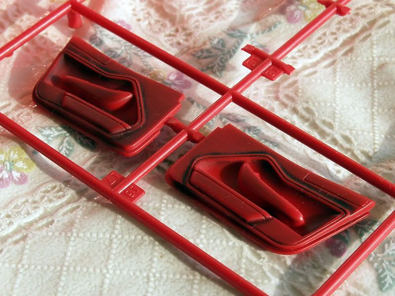 ![]() ![]() In the end I decided for this ones, painted with Alclat jet exhaust. One big thank you to Steve aka Hiroboy for providing Pegasus sleeves ![]() Then I worked on chassis and interior parts a bit. Interior will be red/carbon combo, since it is realy hard to get good looking red seats I decided to try preshadeing technique before I put red paint on, this is how it looks before red paint. ![]() ![]() ![]() ![]() Chassis is simply painted with flat black, Alu parts are prepared with alclad and will be drybrushed with Aluminium when I fit the wheels. ![]() For the end just the picture of brakes that I will use, as you know Revell ones are.......disaster ![]() Thanks for looking