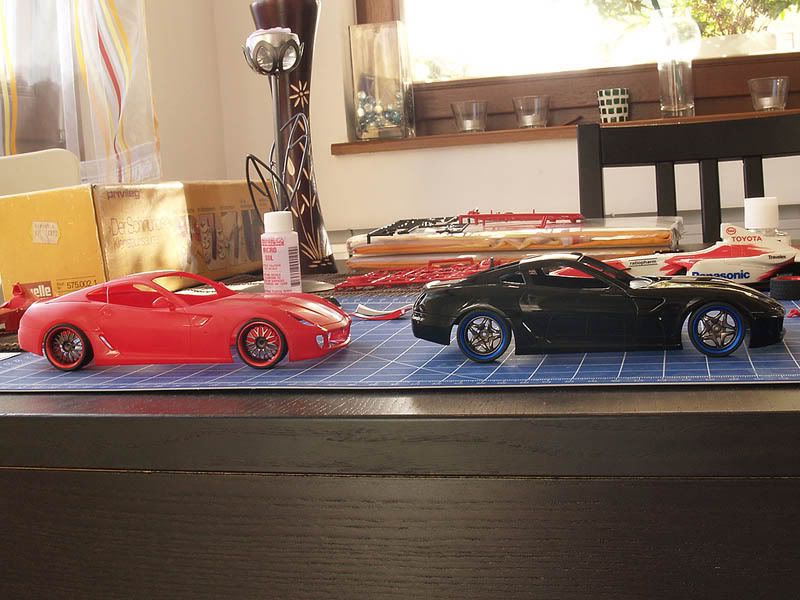 Thanks Sasa now we can see the full build up comparison of those two kits~ Nice progress so far! The black one with blue rims really looks evil~ Give it a cold interior to make it more evil please~~~