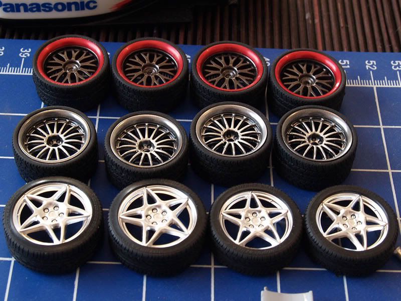 As Tang explained in his review Fujimi realy look better in many thing despite the lack of engine. The thing that impressed me the most is the shine of Fujimi plastick, just look at that, I was tempted not to paint it ![]() ![]() Problem is in mold lines so after I attached side skirts and C pillars I have sanded everything, first with 500 then with 1000 to have this. ![]() And again I played with wheels a bit more ![]() ![]() not bad in blue either ![]() Fujimi with wheels intended for Revell ![]() Fujimi will be red, with OZ Superturismo in Pegasus sleeves, everything painted in Alclad polished aluminium. That's it for now, thanks for watching