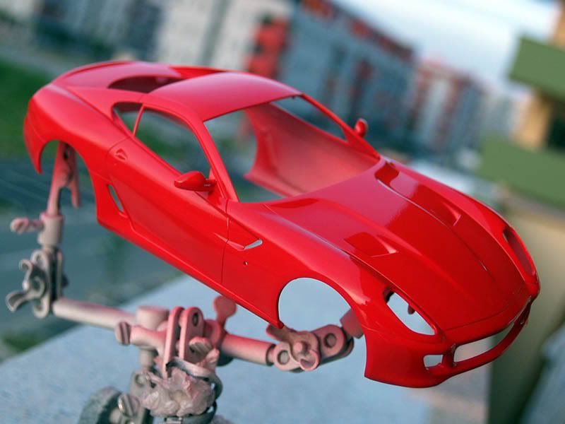 ![]() Meanwhile I managed to prime, paint and clearcoat the shell (Tamiya primer, Zero Rosso Corsa, Zero 2K clear) ![]() ![]() A bit of orange peal ![]() After sanding and polishing ![]() ![]() ![]() I also started with carbon fibering the interior parts. ![]() Wheels ready (compare the size of Fujimi stock wheels, they are huge) ![]() And then, I left the body on the balcony, weather was perfect, body was in the box, on the table, box open, wind started, I rushed to the balcony and there it was, flying 599 body slaming in to wall and on to the floor. Here are the damages, allready covered with white putty ![]() ![]() Strangest thing is that rear view mirrors are fine, most of the corners are fine, only big hit was with rear end. Now I will see will I be able to save it or brake fluid and all over again. |