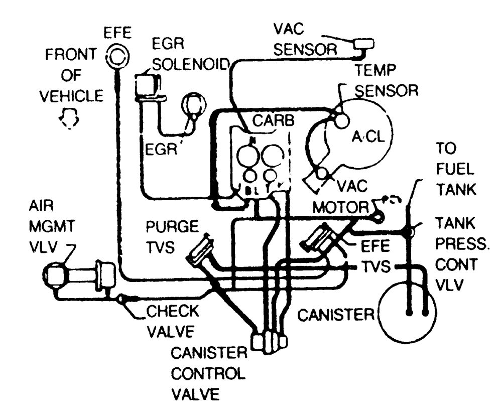 there is one going to the themac thing that you described, and one going from the thermac thing to the "nozzle" of the air cleaner, that actuates a butterfly valve. i certainly havent changed any of the emissions stuff, and the previous owner was an 80 yr old that had the carb tuned so that it wouldnt drive over 70 without starving itself of fuel in the interest of saving fuel and stuff. i'm guessing that it is all intact |