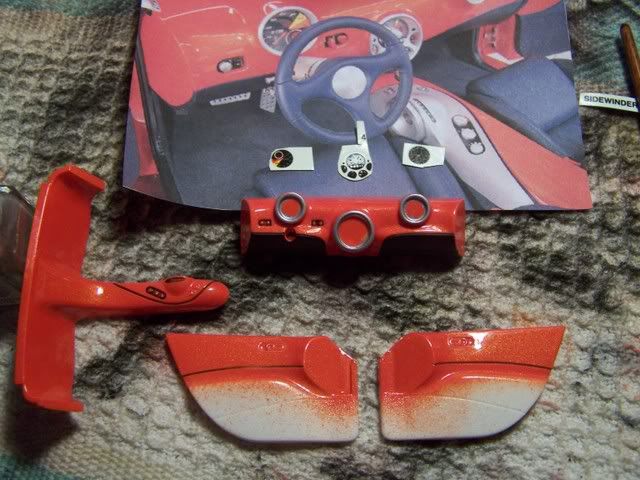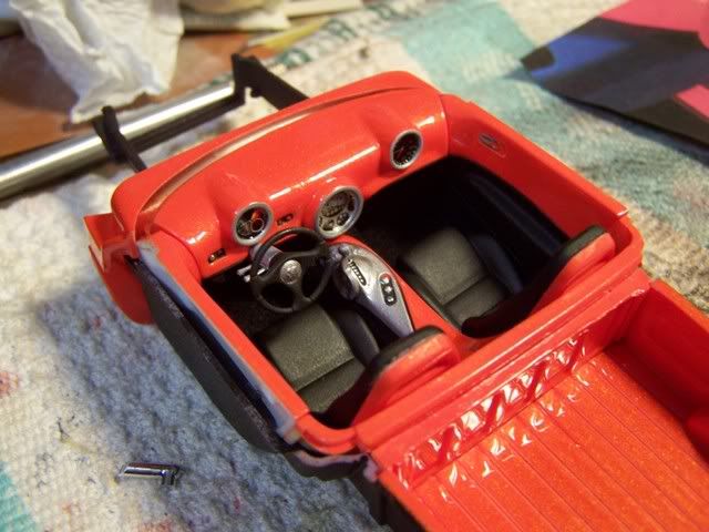 Great progress, dunno why so little responses. Gotta say its coming along excellent, the paint came out top notch. Also the interior is very clean, one thing i noticed is when you put on the flocking it was in clumps. I don't know if you used a strainer, but it really spreads out the flocking and covers it well. The coke cans are a nice touch, but i just hate it when i spill some on my engine.
