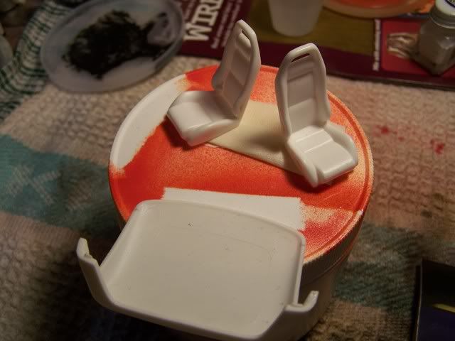The seats are very nice! I like the white masking tape stripe between the black and the orange ![]() ![]() (I don't like flocking, not specially yours, truly I don't like any scale-flocking , it always reminds me to TeddyBears but this is my own problem...)