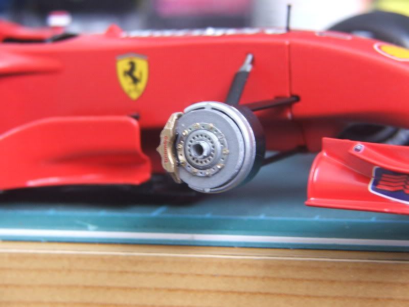 When I came to do the wheels I had a dilemma. In the kit you're given a poly cap which goes inside the brake disc which allows the wheels to rotate. But the photoetched brake set meant I had to shorten this cap which presented all sorts of problems. Where the knife had cut the cap it wasn't quite short enough and also deformed the cap slightly which meant it wasn't rotating and was difficult to get into the brake disc. This meant I wasn't going to be able to have the wheels rotate. Only a minor issue though, if not a positive one, as it's going to be on display and I don't want it rolling about.