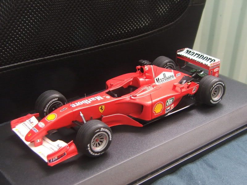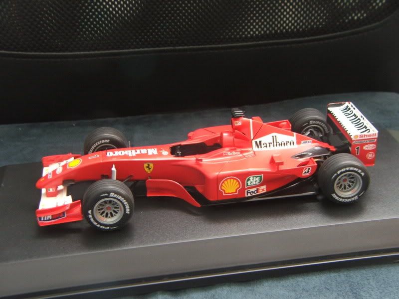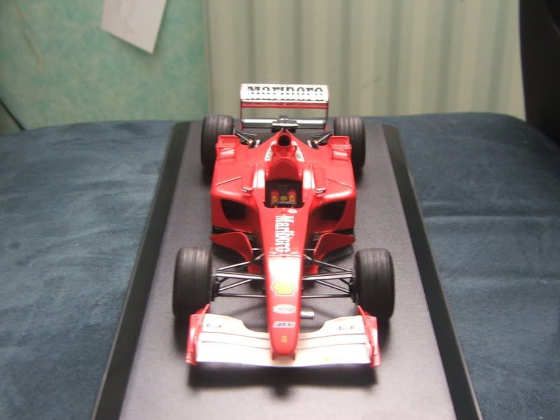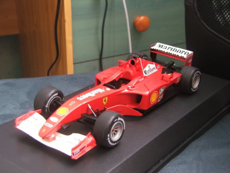 Well it's not quite finished but it's now display ready!! The wheels have gone on and all that's left is to clear coat the rear wing, add a couple more decals (some white sponsor logos below the Bridgestone sign) and the yellow strip on the camera as per the Japanese GP. Also I have to put the windscreen in place. Otherwise the only job left is a bit more tinkering with the engine but I'm going to leave that for a rainy day I think. I really should just finish it now while I'm still doing the Ferrari but I'm very tired of this model and my patience has run out :-/