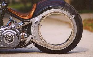 Maybe the oval sprocket is how they get that distinct sound?! haha. I like choppers with 'old-skool' primer/bare metal look, although with those rims, maybe something super bright candy.