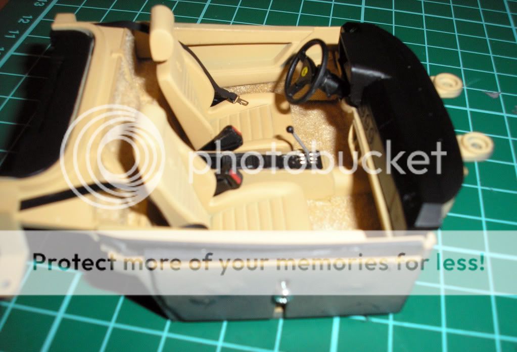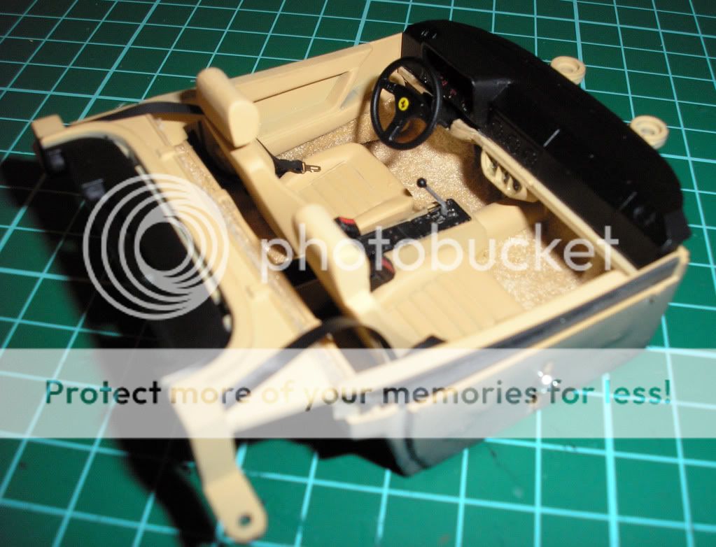 I make some progress in 512 TR… We start with interior parts. After I primed with an old Humbrol grey… ![]() I start some enhancement to the seats. I begin by cutting the headrest off the seat. I attached seats backs, from evergreen thin styrene. After that, I make some holes for headrest. I choose to cut the headrest, from one seat (for driver only) for an asymmetrically and more realistic view. In many cases, I think, the passenger don‘t adjust the headrest, just enjoys the ride… ![]() So we have this: ![]() ![]() The interior‘s color, are German Desert Yellow (FS30400) from Lifecolor!! I chose a lighter tone, than Testarossa’s interior. The dashboard painted with semi gloss black.![]() ![]() The engine parts painted with Alclad‘s Aluminum, after a regular masking procedure. As you see, I cut the exhaust system from the back of the engine. (Fujimi give it in one piece with the chassis). ![]() Finally I decide to paint exterior with Zero‘s Jet Black color. I already have it, in my stock (I don’t really know where can use it. I bought it, after a mistake… the correct paint, that I realy want are a Lotus black. )![]() After that, the body cleacoated with Zero‘s Laquer and waxed. ![]() ![]() That concludes these update. I planning to finish the 512TR soon, so stay tuned.. Aaaa, this is not a good modelling picture, but I like it, so I want to share it, with the guys here. Gilles watching my job… ![]() Thanks to everyone who followed this WIP! I wait for your comments… |