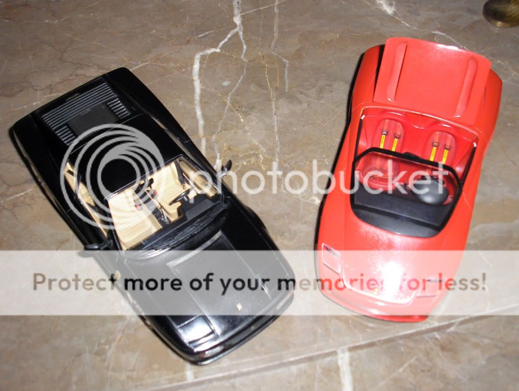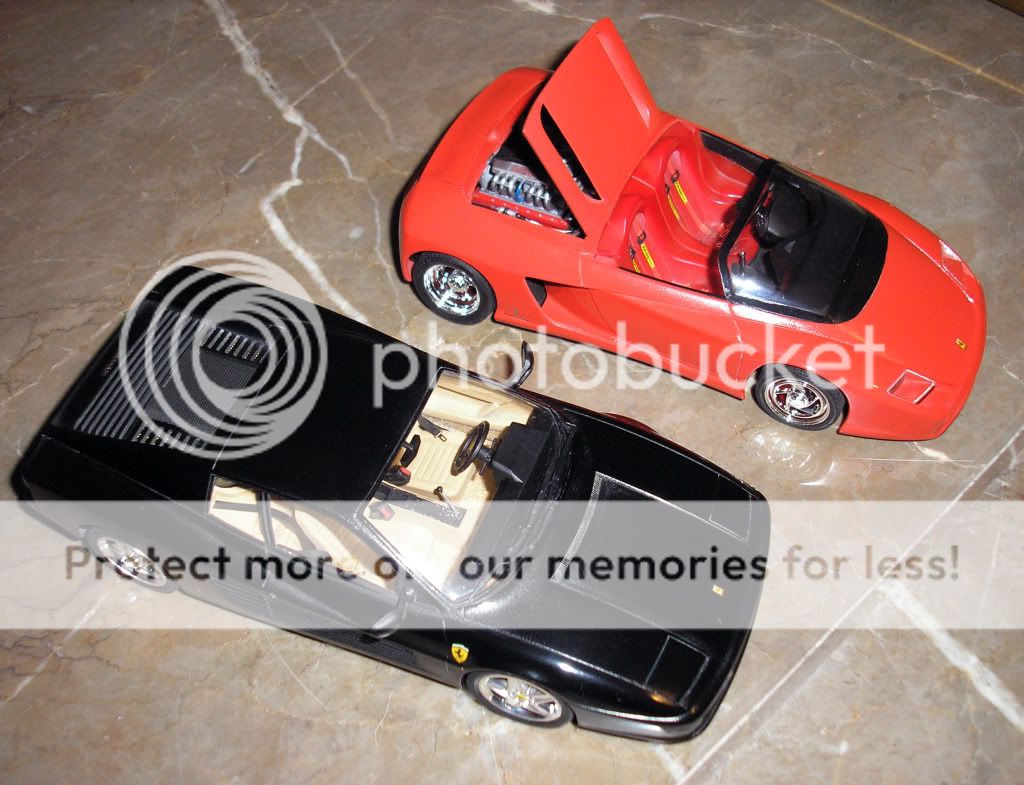 In web search I found this and I want to share with us. It‘s an unbelievable use of a classic Testarossa… I think all guys (almost) agree that Ferrari is a religion! ![]() I make some progress… It ‘s time for body paint. I paint the Mythos and Testarossa with Zero 323 Ferrari Red Before that I primed the bodies with Zero Grey Primer. Next time I gone use white primer. As I see here may take better result. The red bodies after 3 or 4 light paint layers, looks something like this : ![]() ![]() ![]() In my 275 GTB, I have many issues with Zero Clear Coat. I try to be carefully know, and I gone polished it better. What‘s your opinion for the body paint? I use a Badger 175 Crescendo (I have it 15 years…). ![]() After that I mask the Testarossa’s body and I paint black the window trim, and the grilles in front, in rear and in engine cover. ![]() ![]() I parked for a while the Mythos, until the cleacoating procedure starts… ![]() I decide to finish the Mythos first, so I cleacoat only the Mythos body. After that I polished with Wax and attached some details (dashboard, steering wheel, etc.) I am not satisfied with the result but I ‘m learning for my faults. I hope to Testarossa and 512TR I do better job.![]() Sorry for the bad photos but the polished body looks like : ![]() ![]() I plan to publicize, as soon as possible, the complete Mythos photos. Thanks to everyone who followed this WIP! I wait for your comments… |