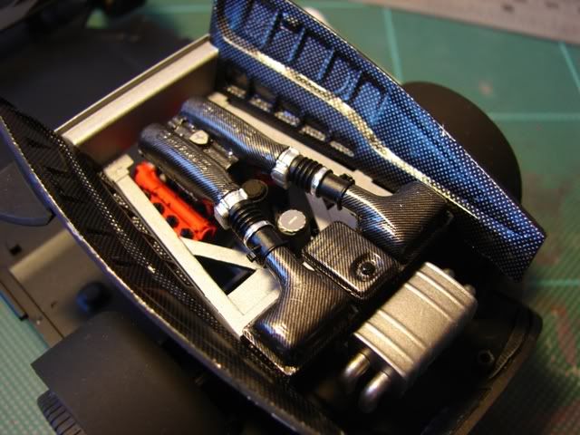 Finished this part with some BMF, paint and PE so the engine bay area is now complete. ![]() ![]() ![]() ![]() Finished the CF between the seats and also finished both the the insides of the doors. ![]() ![]() ![]()