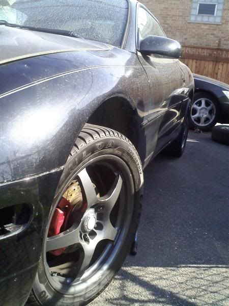 Ya I need to do the suspension this summer as well, but again was just trying them on. Not sure how I feel about them still though. I've got it printed out at my office so I can stare at them all day. Wish the car was clean when I took those pics, would help out a lot. But seriously, I just keep seeing the MX6 those used to be on when I see the car lol.