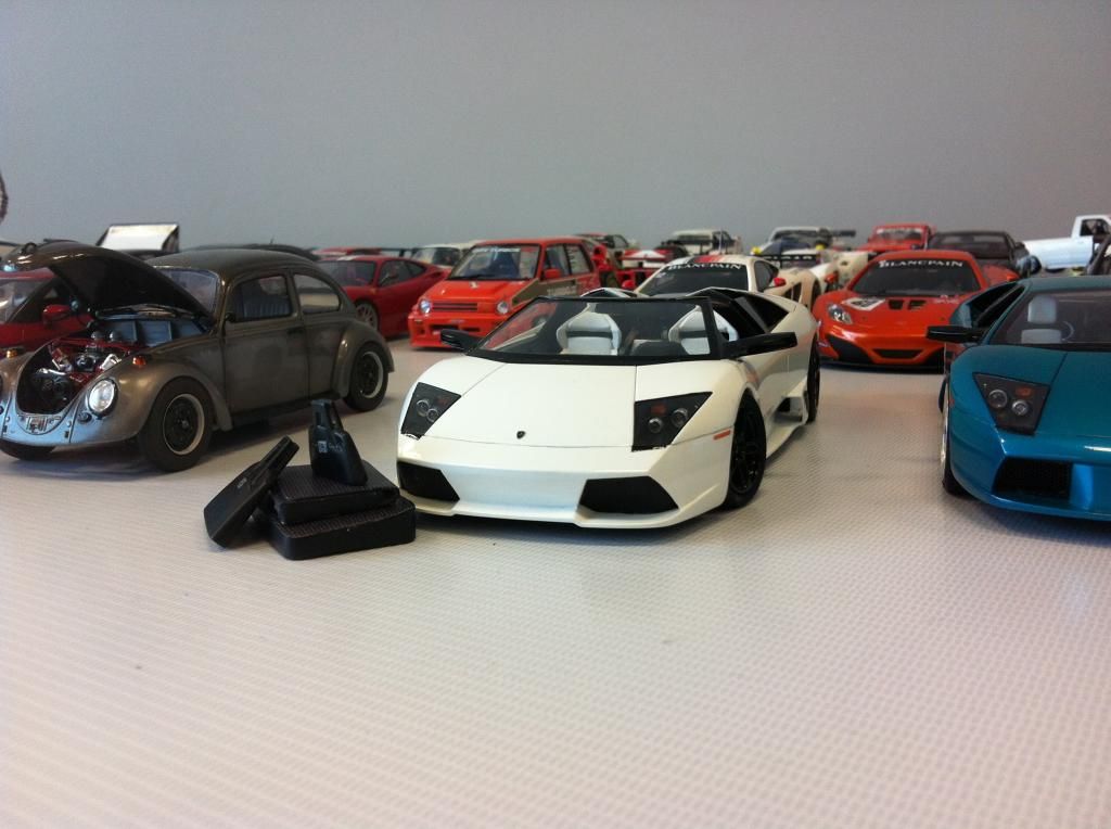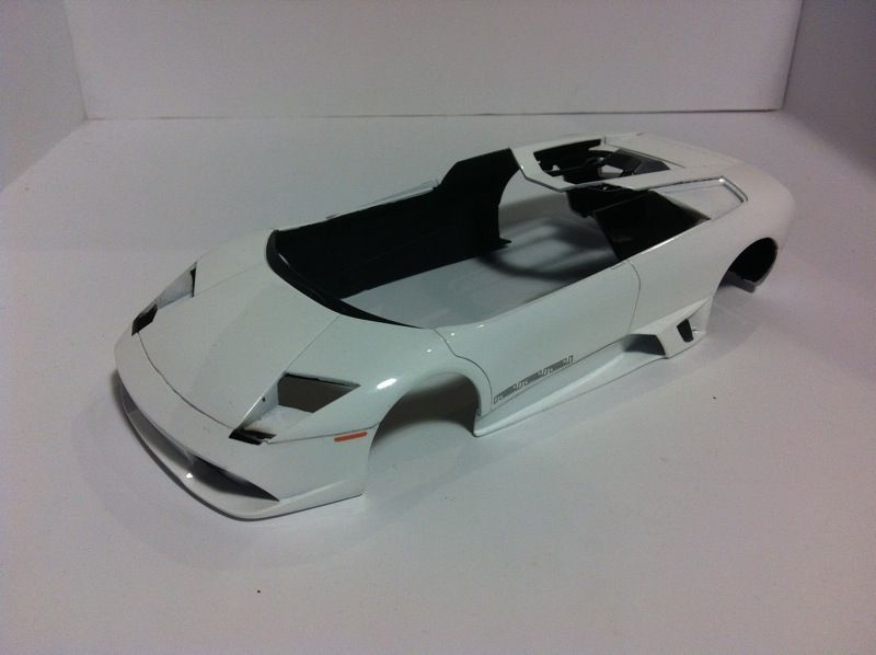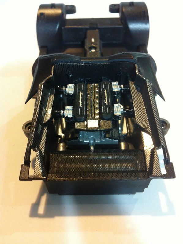 So little update. Ive clearcoated the interior parts. The special limited edition Versace Lambo has the full Carbon Fibre package on the Lambo options list & also Versace trimmed & embroidied leather interior. Ive seen a few variations on the net with differing coloured leather inserts, like door insert in white, centre consol in black, seats half white etc, very confusing considering Lambo reckon they only made 2 roadsters... The patten required for the doors & dash was too small for me to cut & paint mask like the seats so a printed decal had to suffice but I think it represents the embroided 1:1 pretty well. I used Mirco - Satin for clearcoating all interior parts. Enough words, picture time!! ![]() Heres a pic with the flash on ![]() ![]() The Seats managed to get some dust in them whilst drying so need to fix that. ![]() With the interior finally out of the way I'm now gonna have to focus on the chassis & those epic brakes! Ash