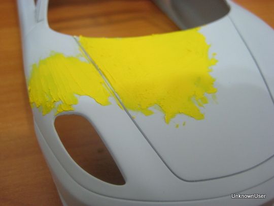 As I drilled holes in the rear light socket when I removed the rear bumper, I have to fill the holes using putty. First, I cut a piece of pla-plate into semi-circle shape and glue to the back of the bumper, it will act as the backbone when I fill with putty later. ![]() ![]() This is the putty that I used, the industrial type putty that I bought from local hardware shop. It’s a 2-part putty. To use it, I cut them in equal proportion and mixed both putties together by adding some water to ease the mixing. ![]() ![]() ![]() This is the result after filling the light socket with putty. ![]() Also, using the same putty, I strengthen the connection point of the body and the front end. ![]() Carbon-ceramic disc brake was replicated using gun metal with flat clear coat. The discs were sanded to create the wear-and-tear effects. ![]() ![]() I noticed the original steering wheel needed some attention, so I filled it and painted it in semi-gloss black. ![]() ![]() Engine bay and the engine cover were painted. The red engine cover will be painted with flat clear soon. I’ll be adding HobbyDesign’s Ferrari metal transfer and will do some wiring soon. ![]() ![]() The chassis is almost ready. Interior is the next part that I will put more efforts in detailing it. Still need some touch up on the body before I can proceed to painting main body color. ![]() That’s all for now, thanks for reading.