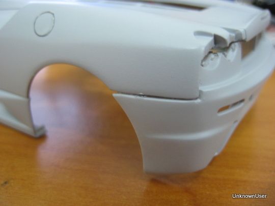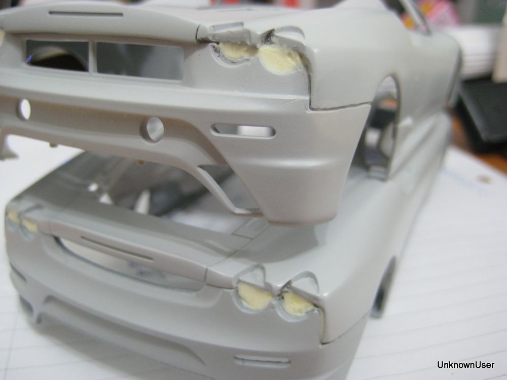 The exposed area was oversanded, to correct it I used Tamiya’s polyester putty. The polyester putty is actually a two-part putty, after mixing it according to the ratio recommended by Tamiya, I applied the putty on the area to be corrected. ![]() This is how it looks like after first round of sanding. ![]() Primed and checked for errors, wasn’t happy with how it turns out, so here goes another round of sanding. ![]() Primed again, looks so much better now… ![]() There is a huge gap between the bumper and the rear body, I’m thinking of filling the gap and re-scribe the panel lines…any ideas guys? ![]() ![]() More progress on the F430 coupe too, cut and removed the plastic light housing of the original bumper, planning to replace with a clear sheet of plastic. ![]() ![]() Now let’s have a look on the primed Scuderia 16M body and the F430 coupe body. Can anyone notice that these bodies have undergone a major surgery before? ![]() ![]() ![]() That’s all for now guys, thanks for reading the post. Comments are welcome!