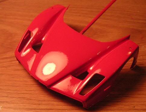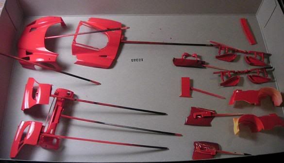 I have the Enzo too and I still didn't have the guts to build it yet... The red turns out great despite the orange peel. A quick rub with a rubbing compound will make it smooth. Great start and good tips.