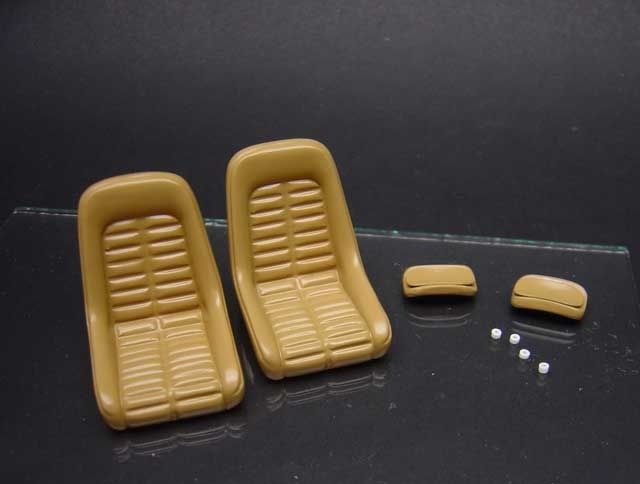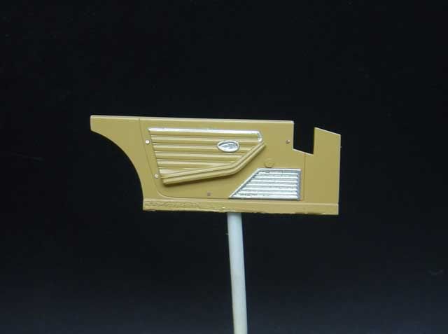 Time to move inside the car. The Daytona’s interior was never really very “interesting” or beautiful IMO - Enzo’s boys quite rightly concentrated their efforts into much more important areas such as 12 cylinder engines and a beautiful (again, my opinion) body shape. Also, this was a ‘70’s car and the Daytona shows it! Boxy areas stuck together with sparse - dare I say haphazard? - placement of very utilitarian switches. I guess the leather work was its saving grace Fujimi do a pretty good job here but nowhere near the level they showed in the engine mechanicals so I’m glad that I picked up the Acustion PE set, as this helped add some nice detail in a couple of areas. Overall the interior is giving me a lot of headaches – not least because interior is my least favourite part of the process and it is going to be very visible in an open top. On top of that, I want to try and do something nice because Bad and Ugly surely will! The first thing I wanted to try was opening the air vents. There are 4 of them and they are big-time visible! I considered drilling them out and making new ones as MPWR did in his F50 but, as the song goes, “you gotta know when to hold ‘em and know when to fold ‘em” so I decided to try first to scribe away the plastic between the grills. If I f**ked up then I still had the other method in reserve although I don’t know what I would have done if I screwed hat up too! My Hassegawa scribing tool, Try-tool scribers, miniature sanding sticks and lots of swear words and it got there. ![]() Next up was the dashboard. The Fujimi decals here are bloody awesome! – sharp, detailed and well registered and the Acustion set includes a great PE fascia – the only thing missing was glass….so I added it using clear plastic packaging. The basic strategy was to make a “sandwich” of styrene backing, decal with dials, clear part and then PE facia. First I transferred the basic shape to styrene. ![]() Next was to clean and prepare a piece of clear plastic and transfer the shape to this also. ![]() The parts of the sandwich minus the decal ![]() This is a test fit with decal and glass in place. This is actually hard to photograph well to get the true effect of the “glass”. ![]() Completed dash with other PE parts attached. ![]() and the detailed centre panel ![]() The Fujimi seats are probably one of worst parts in the kit relatively speaking with big pin marks in the back and questionable accuracy. Looking at reference pictures the seat itself seems to be "off" and the headrest is molded on. Changing the physical shape of the seat is something that Gio could do but not me so I decided to concentrate on detailing the headrests. This was my reference picture: ![]() As you can maybe see, not only are the headrests on metal rods but there is also clearly a kind of double back to the headrest which I felt was worth trying to replicate. Here you can see the seat separated and primed. The second back was made by transferring a masking tape template to some sheet styrene, cutting it out and shaping it with warm fingers around a paintbrush handle (hi-tech or what?! ).![]() Here are the same parts painted in XF dersert yellow and glossed over with Microscale satin (Vallejo satin is better than this stuff INHO!). The little white rings are slices of drilled out styrene rod which will be sharpie penned black and used to simulate the plastic washers on seat and headrest attachment points. ![]() Finished seats. Still need to be “washed” and if I can source appropriate hardware, I will add seatbelts. ![]() The interior was flocked using white glue method. It was after cursing about this that I had the idea to use double sided tape instead. Too late for this model but I applied the MPWR 1.1.3.0 upgrade to my flocking how-to to make some detailed floor mats. Note that the color of the mats is slightly different to the floor? This is almost certainly to the difference in color of the backing material – worth noting if you ever think about flocking your models with this method. Make sure that the floor plan and mat backing are similar in color (unless you are using contrasting color scheme). ![]() ![]() Door panels. The Fujimi parts are pretty faithful replicas of the original. This was my reference picture. ![]() I assumed however that the round disc above the speaker grill is a blanking panel for a manual winding access point and I tried to replicate by using sheet styrene and my belt-hole puncher to cut out an appropriate disc. ![]() The panel was painted up, BMF applied and screw heads were made out of slices of thin solder and then detail painted with Humbrol Metalcote. BTW the massacre you can see at the bottom of the door panels comes from using too strong glue during test fitting grrrr! Fortunately, after reassembly this is not visible. ![]() For and extra touch of detailing, I added door lock knobs. These actually “work” in as much that you can decide to have the “locked” down position or the “open” up position ![]() ![]() Still to do: Detailing the steering wheel, gear lever, seatbelts, soft roof, pedals etc. Thanks for looking and I’d appreciate and advice on painting/shading the PE parts on the centre console. Just apply a wash? Use enamels? And BTW, I was too chicken to try and go for the 2-tone leather look Stevenski
