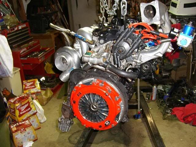 May 1st 2008 - Engine is ready to go. Mounted transmission to the engine. If everything goes as planned, the engine should be in the car on saturday.
