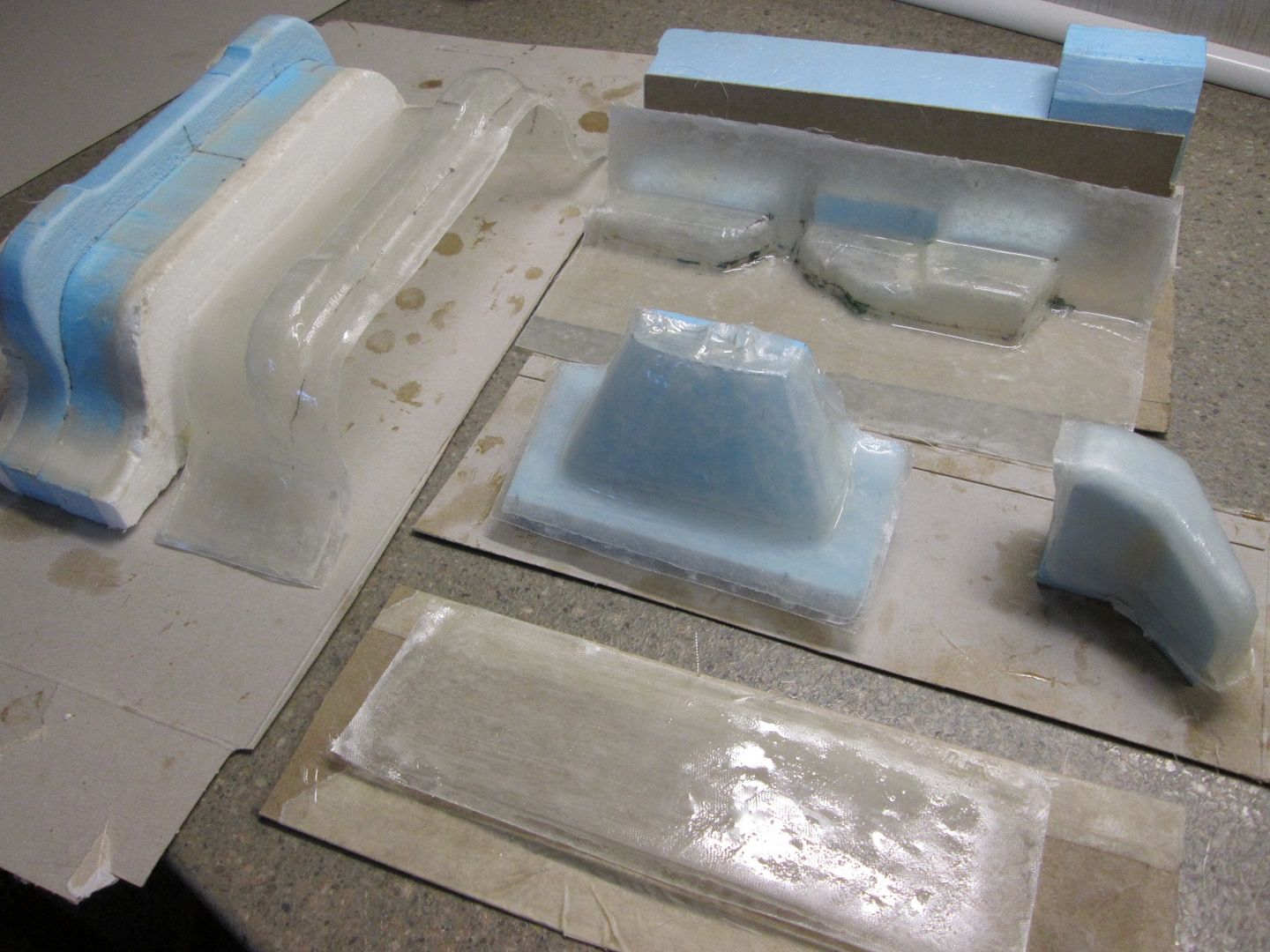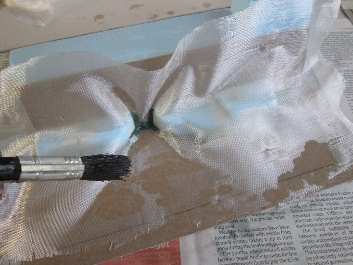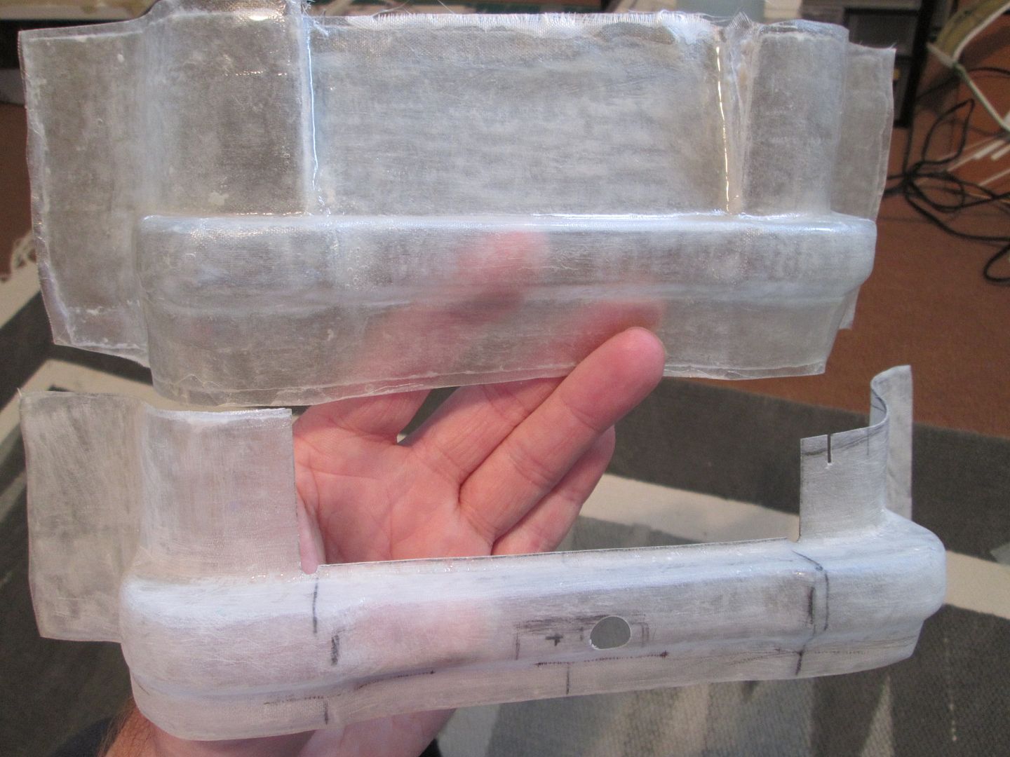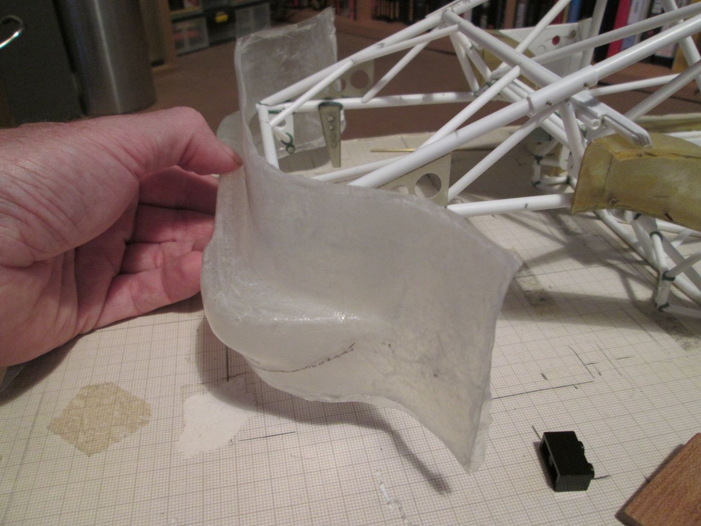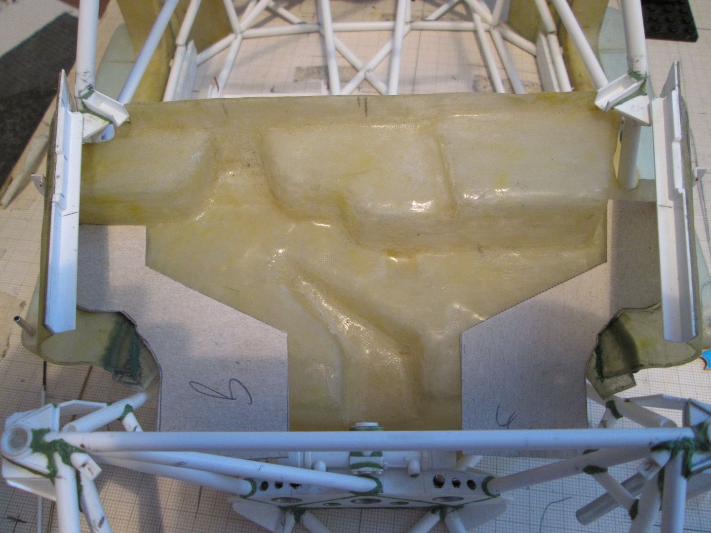 Last week was all about laying-up fibreglass. There are still more parts to be made - rear wing mainplane and endplates, etc - but I had enough moulds ready to start a new batch. So, here's the basic toolkit: ![]() Aeropoxy resin and hardener from Deluxe Materials, petroleum jelly as a release agent, mixing pot, and small brush. The Aeropoxy is poured in the ratio of 3 parts resin to 2 parts hardener, or 7.5ml to 5ml; a quick stir to mix it all together and it's ready to go. Given that it's been quite warm recently, each mix would give me about 30 minutes to work with before starting to go off. Normally this is enough time, but not always... Next up, the fibreglass cloth: ![]() From left to right, 0.6oz, 1.5oz, and 2.3oz; I've also got some 1oz and 2oz available, but these were not used for laying-up these parts. As you can see, the lightest 0.6oz cloth is rather fine - it frays very easily, but is the easiest to work over the curves and changes of direction. The heavier cloths are better suited to panels with less detail, but it's easy enough to mix-and-match and add odd bits of heavier cloth in strategic positions. When first mixed, the resin is quite fluid and brushes onto the mould easily. The first layer of cloth is always the messiest, as you're brushing the resin onto the petroleum jelly - the coverage can sometimes be hit-and-miss. ![]() ![]() The benefit of the 0.6oz cloth is that it can be worked into the corners, as shown above on the front bulkhead mould. I try to keep each layer of cloth as a single intact piece, but on more complicated moulds it is often necessary to make small cuts to allow it to take the correct shape. Rotating the direction of the weave between layers is also a good idea, as it improves the strength and stiffness of the finished part. Whenever I'm laying up, I always work on the more complicated moulds first while the resin is at it's most fluid. You know when it's beginning to go off when the cloth starts sticking to the brush as you're trying to brush it down! At this point there's no chance of continuing - mix up a new batch of resin in a fresh pot, and use a fresh brush. Using the old pot or brush will only kick-start the reaction in the new mix, giving you even less time... So, I put four layers of cloth onto each mould. A couple of layers of 0.6oz to start with, then 1.5oz. The front bulkhead lower section received a layer of 2.3oz, rather than the second layer of 0.6oz. For the final layers on the more complicated moulds I did some trimming and cutting to vary the lay-up. For example, on the rear bumper section: ![]() A smaller piece was then added over the middle to complete the layer. The final layer of cloth was added mid-morning Saturday, then left to harden. Last night I removed the panels from the moulds - in most cases you can get a length of thin cardboard inbetween and work the fibreglass loose. This becomes tricky when you have more complicated shapes, and the cardboard won't necessarily go where you want it to! The petroleum jelly does a good job, but it makes it a messy process. ![]() Once off the moulds I gave everything a quick trim around the edges, then a scrub in warm soapy water. Now it's all about getting everything trimmed to shape properly, and smoothed-off: despite my efforts to remove the worst of the lumps and bumps between layers, the outer surfaces are in need of further attention. Of course, new panels have to be offered up to the car as soon as possible - it's the rule! ![]() I measured the thickness of the new panels - each one is typically around 0.6 to 0.65mm, which is okay. If they were intended to be more 'structural' I would possibly have added a fifth or even sixth layer of 1.5oz cloth, but for these parts it was unnecessary. Finally for tonight, I've also been working on the right-hand rear bodywork support frame, and making a start on the extension for the tail support: ![]() The tail support is all 1/8" ali tubing, and each side will be pinned into the back of the engine bay. Styrene tube would be easier to work with, of course, but there's going to be some load on here once the bodywork is fitted so ali was the better choice. I'll continue with this during the week, and make a start on trimming some of the new panels. That's it for tonight! SB |