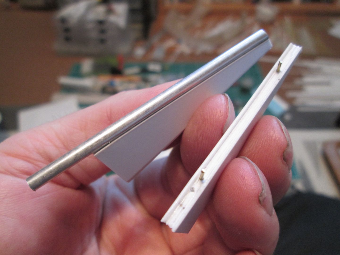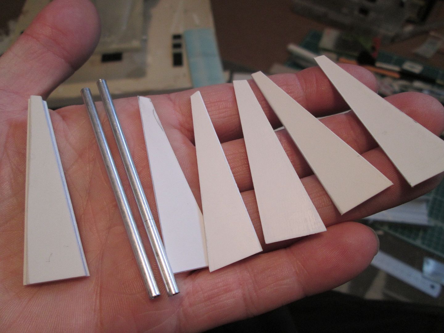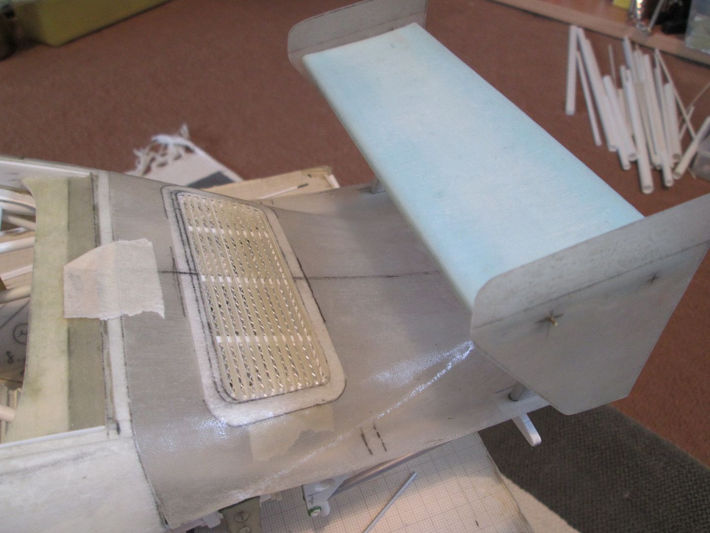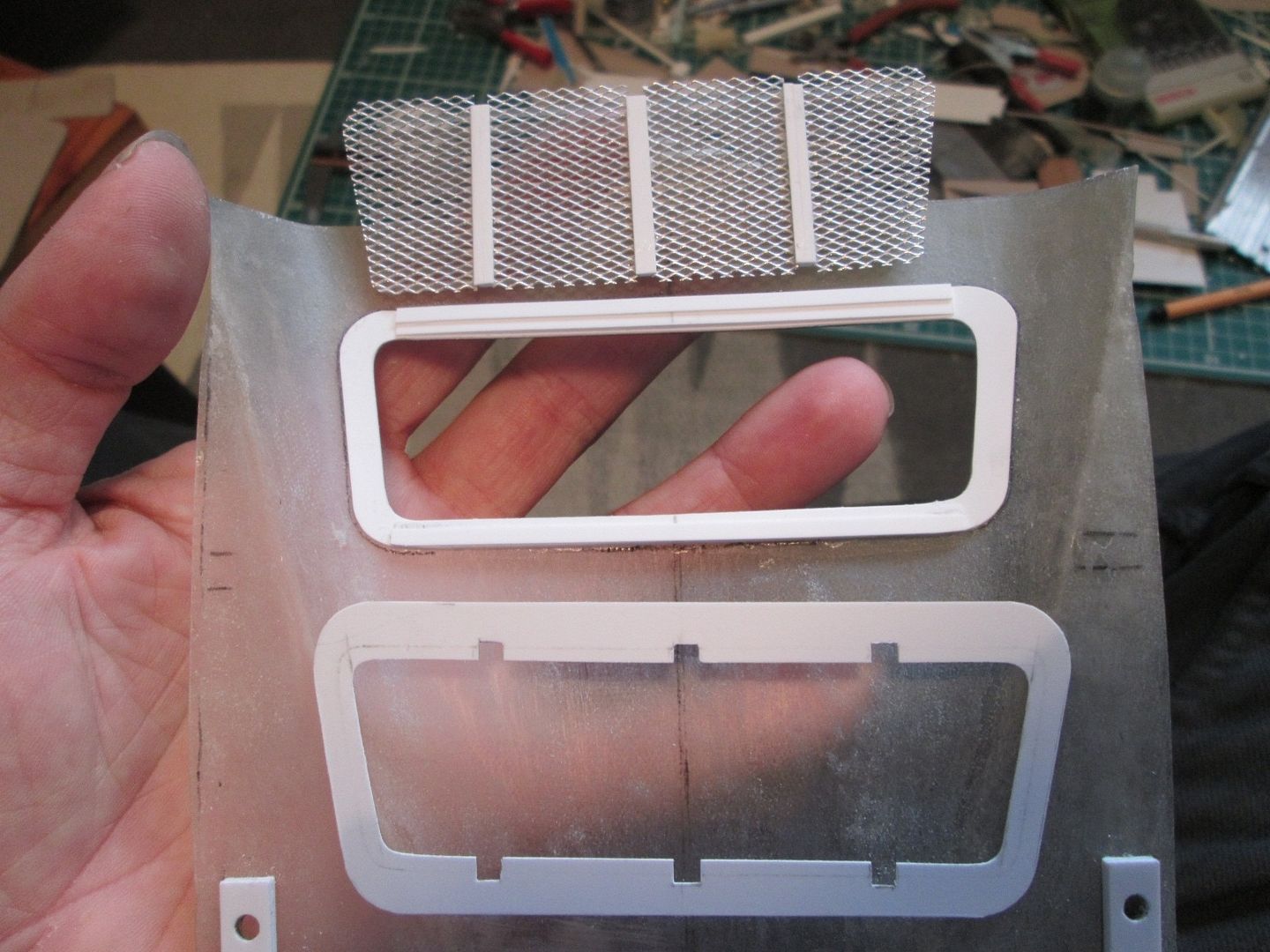 Odd time for an update (from me, anyway) but I've reached a good point in the build and wanted to show what I've been doing before getting on with the next job. I've certainly had a productive week, but I'll start with the mk2 bumper panel which made a brief appearance during the last update. The extra height I added to the mould has allowed me to get a better fit where the outer ends of the bumper panel are wedged into the rear wings / fenders: ![]() ![]() Getting this to work properly has been frustrating at times, and still needs more effort before I'm ready to start gluing parts together. I'm still reluctant to cut the bumper panel into the three sections just yet, as it's too useful to have it in a single piece. The angled panel over the top of the turbo units appears to work well - it should provide enough room for everything to fit. I'll return to these parts in a while. Next, a piece of destruction rather than construction. When I had the mk1 version of the bumper panel I realised that the turbo exhaust pipes were not going to be in the correct position. I'd modelled them as being horizontal, but the engine actually sits in the car at nose-down angle - so the tailpipes were now pointing upwards. Now, I'm not claiming total accuracy for my bumper panel measurements, but I knew that I couldn't make it all work as it was - the best solution was to adjust the angle of the tailpipes. Rather than completely re-make these parts, I made a pair of new flanges from styrene tube and half-round section, then separated the old flanges from the tailpipes: ![]() Moving on to this week, I decided to spend time on the rear wing - the mainplane was easy enough to trim to length, but that still left the main supports to work out. Once I'd settled on a shape for a template, I cut five panels for each support from a mix of 0.75mm and 0.4mm styrene, giving a total thickness of just over 3mm. I then added a length of 1/8" ali tube to create the leading edge, and to provide some strength and (hopefully) structure: ![]() As I glued the styrene panels together I created a channel in the front edge, into which I could pin and glue the ali tubes: ![]() From here it was a question of shaping and filling the trailing edge to create more of a teardrop profile, then adding brackets to attach the mainplane. The stay is small-diameter ali tube with a length of wire inside, with 3mm styrene rod and hex used to create the rod-end joint detailing. I kept a small piece of the left-over mainplane to use as a place-holder, rather than risk screwing up the actual part: ![]() More of this later! Working on the wing and the engine cover extension panel gave me the impetus to tackle the rear grille. I worked out the basic measurements, and used one of my photos of the Silverstone Kremer 935 to get measurements for the spacing and the thickness of the grille slats. Thin styrene would have been ideal, but I was concerned about it distorting over time when glued together, so decided to use some of my flat-sheet fibreglass instead: ![]() I cut the slats approx. 2.5mm wide by about 100mm long, then made the three supports from 2mm wide styrene. The fiddly part was adding the extra lengths of styrene across each support to create the correct spacing, but they were easy enough to trim to length afterwards. I then taped the three supports in place on a piece of cardboard, and started CA'ing the slats into position: ![]() The slats were then cut to length to match the shape of the hole I was busy cutting into the rear deck. The hole edges were built-up with layers of styrene sheet and lengths of strip, as I worked out how to create the rest of the grille. Mesh was added to the underside and CA'd in place, with 3mm strip added as extra support. Finally, another styrene plate was cut which would fit around the whole lot and hold the grille in position: ![]() ![]() Eventually the grille section will be painted black and can be glued into the rear deck panel. I've shaped the outermost ends of the slats to follow the curve of the bodywork, too. So far, I'm very happy with the result - it's not a job I'd planned to do this week, but given the time it's taken I'm glad I did! Here's a shot of the rear deck with both the wing and grille panel in place - I trimmed the wing end-plates to size and pinned them into the styrene inserts shown last time. I added two small lengths of 1/8" ali tube into the trailing edge of the mainplane to create sockets - I then glued small styrene pegs onto the inner face of the endplates so that they were held at the correct angle. In time the whole lot will be glued together properly, but for now it's staying loose: ![]() ...and here's the required shot of the full car, with nose and whale-tail in position! ![]() I have to do this from time to time, as it reminds me of what I'm working towards - getting the wing and grille sorted are both sizeable jobs crossed off the 'to do' list. So, it's definitely been a productive week - and it's still only Friday. The next job I'm planning to tackle is the floor: I want to get some strength into the chassis structure, as the front end is vulnerable until the main roll-cage is added. Styrene sheet is too flexible, fibreglass is better but not good enough...maybe if I had a sheet of carbon-fibre I could use? More on this next time...! All the best, SB |