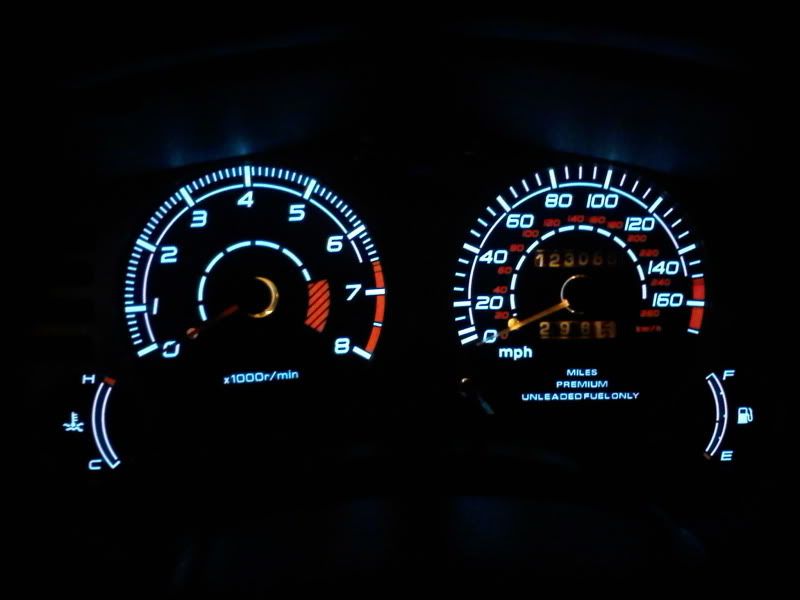 Gauges I found ebay for like $40 I believe. The bezel I've had for years. Was custom made. Always had it with the white gauges though, and was never too happy with it. But with the black faces again... wow. Things looks great at night as well. Tails looks PERFECT at night. I can still see while backing up (always a plus) and the brakes and reflectors all turn out good. I want a pic from behind on the street, so I'l try to get one of those. But at night while parked, the whole car is blacked out and is so sexy.