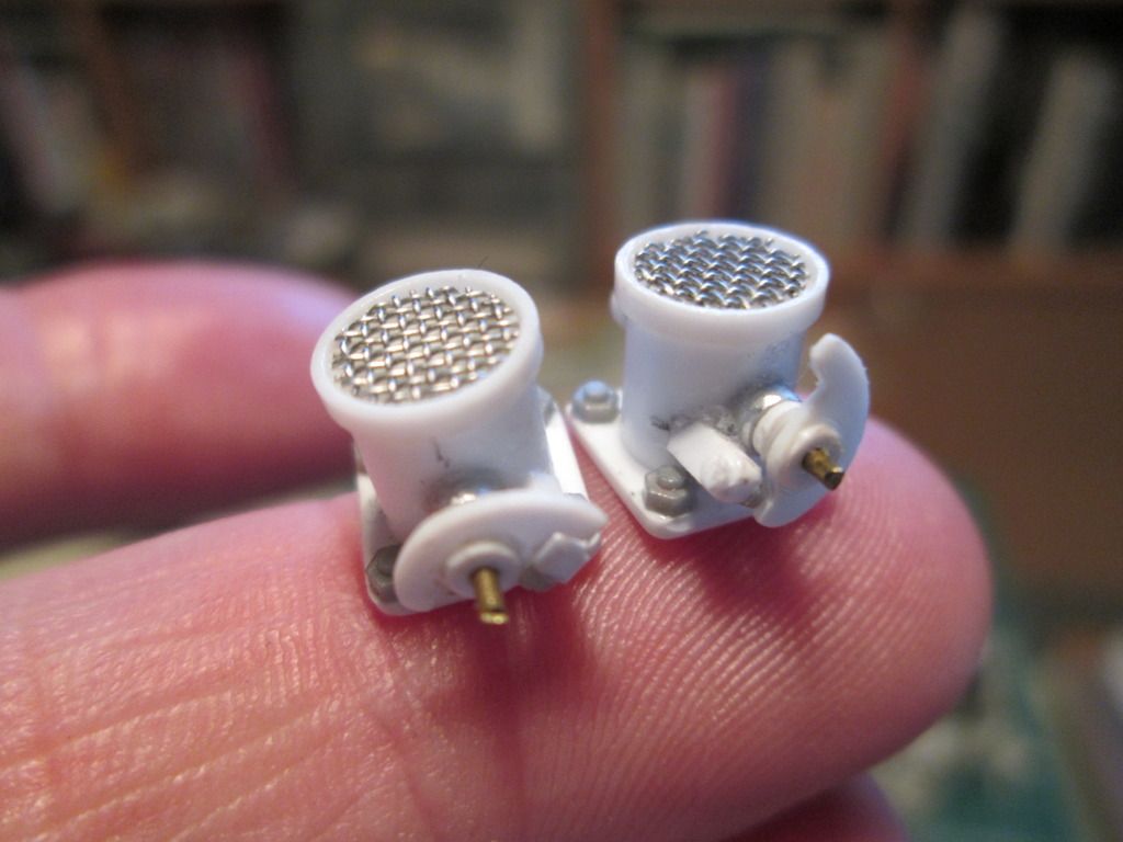 I tried to post this one last week before going to Le Mans, but the forum was acting-up a bit. Now I'm back and have the rest of the day off, I'll do the update. Seriously, lots of great suggestions there - and several different ways of (hopefully) getting the desired effect. Before leaving for France I picked up a few more supplies locally: ![]() A new can of 3M spray-mount, some fine ballast from Woodland Scenics, and a pot of 'Sandy Paste' from Acrylicos Vallejo. I made up some more test-pieces - the new can of spray-mount certainly sprayed better than the old one I had used earlier, but didn't produce enough texture for the dry-brushing to pick out. It didn't stick too well, either - I did this batch of tests using the new fine ballast, and it simply rubs off at the lightest touch. Okay - I could try spraying something on afterwards to seal it in place, but I'm not overly optimistic... On the other hand, the new fine ballast does work well with PVA glue - see below, left. The 'Sandy Paste' is, as the name suggests, a fine sandy paste which can be painted-on as required - see below, right: ![]() Right now I'm most excited by the sandy paste - I stippled it onto the test piece of styrene but wasn't impressed by the coverage at first. However I think the first coat gave the next coats something better to 'key' to, and after three applications I had the finish you see here. I'm going to try giving it a light sanding-down to remove any obvious high spots, but even as shown I think it will work. Overall, this has been a useful exercise for me - those of you who have followed my recent projects will probably agree that although I might try various ways of making the parts, I don't experiment with textures too much. This doesn't mean I'm going to be texturing everything in sight, but I'm certainly thinking about how I can use some of these ideas on other parts - brake calipers, perhaps, maybe some of the turbo parts? We'll see. Okay - now for a little tidying-up. Next, here's a close-up of the two little unknown intercooler valve-things, with some extra detailing added: ![]() Finally made the clutch lever for the gearbox, too: ![]() The other major project of the last couple of weeks has been back in the cockpit, working on the pedal-box area. In the photo below you can see I've added a large footrest which is pinned to a bracket on the floor, and will eventually be glued to a larger bracket hanging from below the front firewall. Getting this upper bracket right was a major pain - I couldn't do it with the parts in place, so I had to position everything, mark-up, dis-assemble, re-position using the marks, glue, then re-re-assemble to check the fit! Of course, it took maybe three or four attempts to get this done to my satisfaction... ![]() To the right of the footrest you can see the stay which supports the end of the pedal assembly and also shrouds the clutch cable. Either side of this there will be small fibreglass panels to give the driver somewhere to put his feet. Further right you can see a vertical cardboard panel - this is the start of a section which will eventually run down the right-hand side back to the seat, and which covers the throttle cable and also shrouds some of the pipework from the nose of the car as it runs through the cockpit. Not too many photo references for this, unfortunately, so I'm making it as best I can to fit the layout. Here's the same area a little later: ![]() The footrest has been drilled and holed as per some of the reference photos, and the fibreglass floor panels have been trimmed into place. The cardboard pattern for the throttle cable cover has been replaced with one made from fibreglass, and I'm now working on making the top cover panel for this. In the corner where the door pillar meets the sill opening there's a white styrene construction. This is the start of the final lower mounting point for the main roll-cage structure - there's one on the other side, too. The actual joint is at the base of this structure, but I'll be disguising this and adding false mounting plates on top to match the real car. It should all be clear after the next update, honest! That's it for now. I'll post some of my LM photos once I've had a look at them - the Friday on-track display this year wasn't as good as in previous years, unfortunately, so there wasn't too much to shoot from a modelling point of view. No chance of doing any painting in the pitlane again, either: never seen so many people around the place! Managed to pick-up a nice 1:43 1977-winning 936 for the collection, too, and spent a while checking out the (Amalgam?) 1:8 Audi and Matra in the Spark shop - 3500 Euros, though... SB |