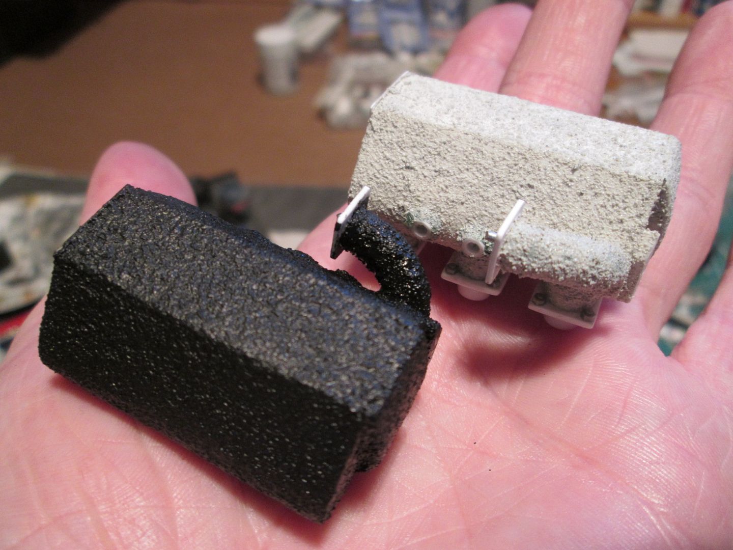 Also Tamiya makes some "asphalt" and "concrete" diorama paints that I have used to simulate on 1/12 - you would have to test it to see if it would be applicable - the Tamiya diorama paints are acrylic paints with ground ceramic to give the "cast" texture effect. they cost about $12-15 usd each and are about 100mL bottles. and can be applied with a brush like you enjoy using. Hope this is of help Cheers John |